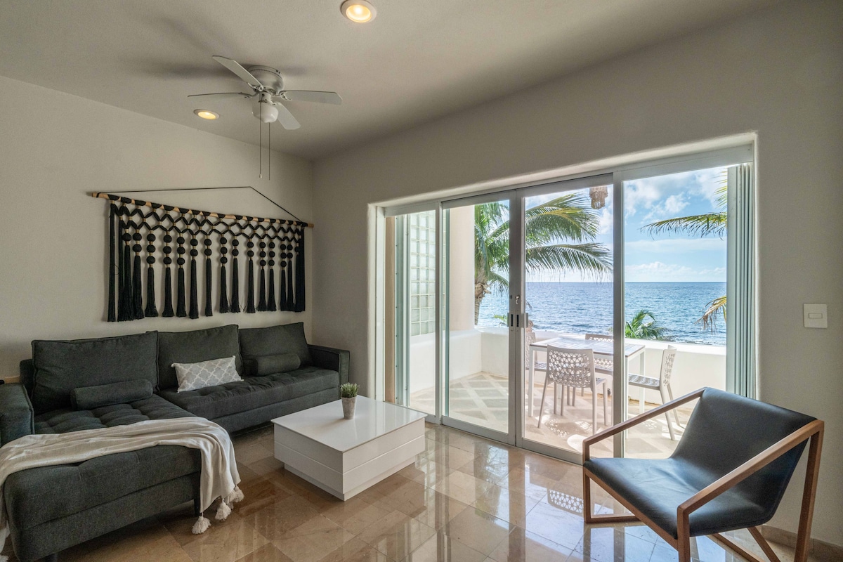 位於墨西哥阿庫馬爾(Akumal)華麗半月灣(Half Moon Bay)的翻新1間臥室公寓。La Joya Condos的這個單位是海濱房源,可欣賞海灣和加勒比海的美景。美麗的海灘和水域就在您的腳下,您可以在自己的個人水族館中休息、漫步或浮潛。 這間頂層公寓單位配備了更新的起居空間,配有空調、全功能廚房、加大雙人床、舒適的沙發、WiFi、可觀看Netflix的智慧電視,以及一個寬敞的百萬美元景觀!