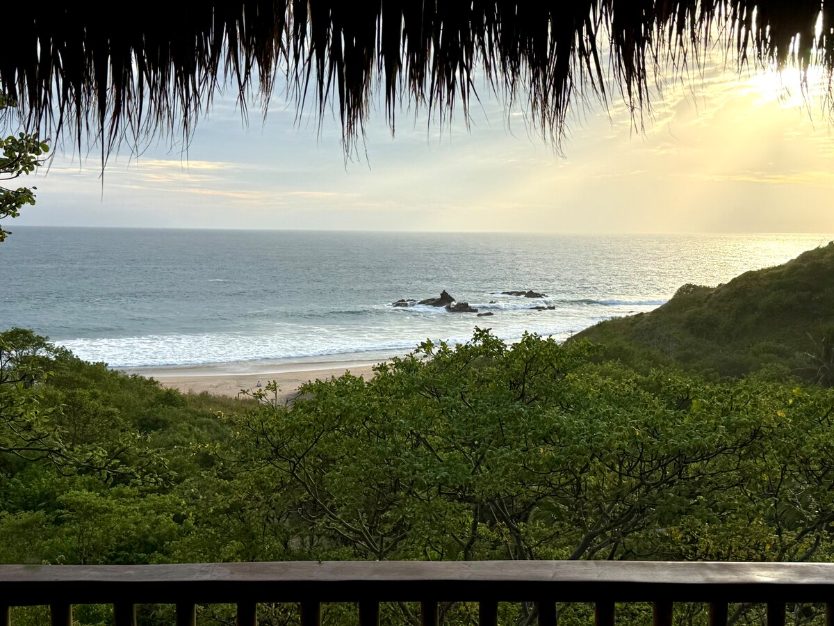在這個地方醒來是一個夢想! 這棟房子就在海濱,每天都能欣賞最美的日落。 它有兩層。臥室位於頂部,以及工作空間( Starlink )和吊牀可供休息。 天花板是一個很棒的露臺。 房子有一個小型私人泳池,您可以在那裡欣賞Playa Mermejita的最佳景觀。 房子非常開放,可以享受清新的風和最佳景觀。