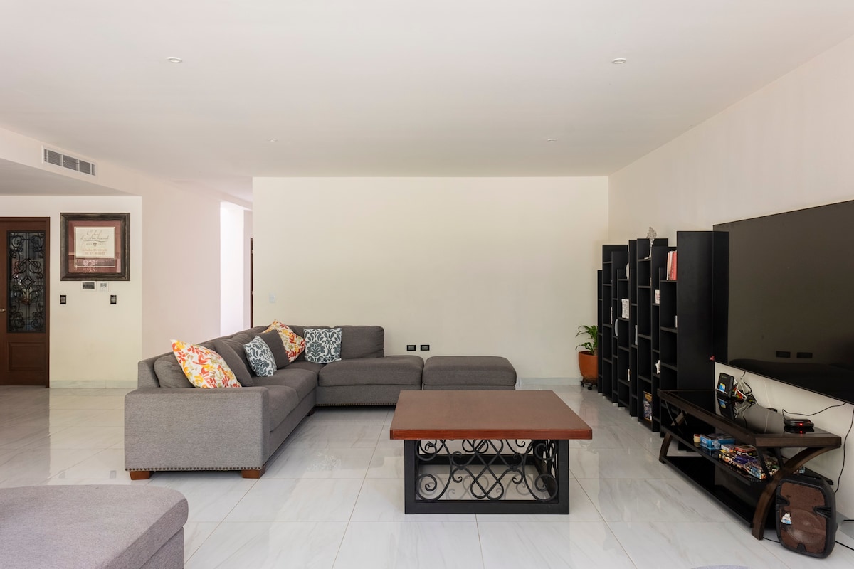 位於最好的區域和最中心的海灘。這是一個非常寬敞舒適的房子,還有一個私人泳池。但最棒的是,它距離海灘僅一個街區,距離第五大道僅幾步之遙,第五大道是餐廳、商店和酒吧的主要街道。距離巴士總站一個街區,距離前往科蘇梅爾島 (Cozumel) 的渡輪兩個街區。如果您從坎昆機場出發,您可以乘坐巴士,無需乘坐計程車。它位於市中心,您不需要開車