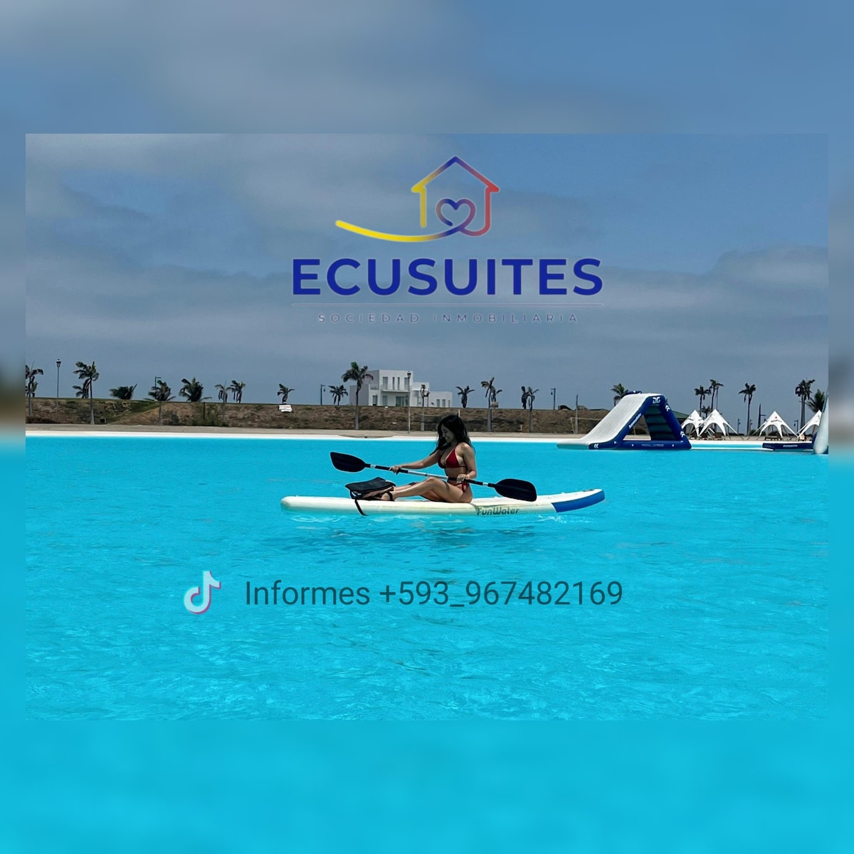 Relax with the whole family in this quiet and paradisiacal place, a few kilometers from the city of Guayaquil, in a safe environment for all its residents and visitors. In its artificial lagoon you can kayak or have fun in the water park. Very safe and fun for children, without taking risks with the waves.