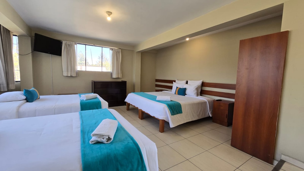 Disfruta de una acogedora habitación con cama Queen, equipada con un colchón confortable, ropa de cama de calidad y una decoración que combina lo andino con lo clásico, creando un ambiente cálido y autentico. Cuenta con baño privado, agua caliente, tv cable, wifi para tu comodidad. La habitación está bien ventilada con ventanas amplias, vista al patio interno, hecho de sillar volcánico único y autentico, y con detalles pensados en ti y una atmósfera que invitan al descanso placentero