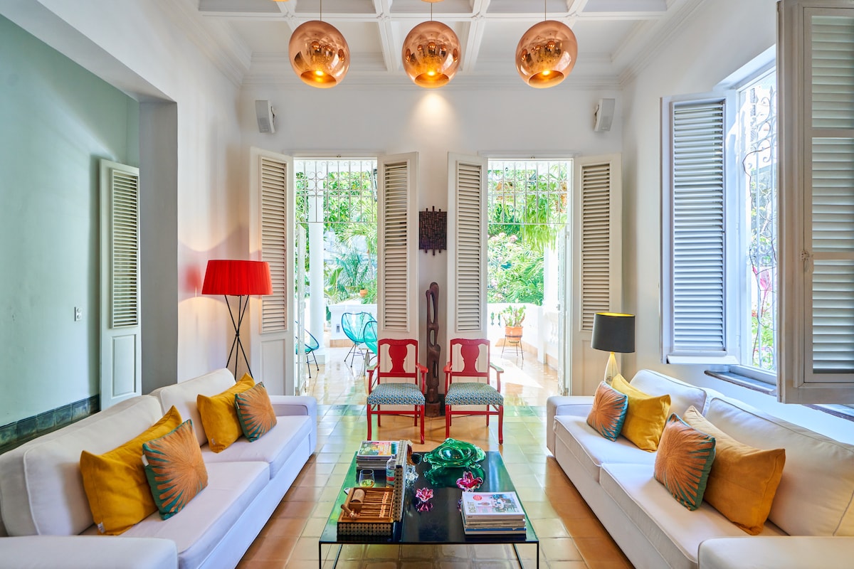 1919年奢華舒適的殖民風格房屋,維護精心,位於市中心,步行6分鐘即可抵達哈瓦那海濱和所有最具代表性的飯店。 住宅區靠近一切,非常安靜,您可以聽到鳥兒的聲音,與大樹林形成對比。 寬敞的戶外露臺、保證精緻乾淨的個性化服務、我們空間的卓越標準。 最多可入住24位房客,免費WiFi。