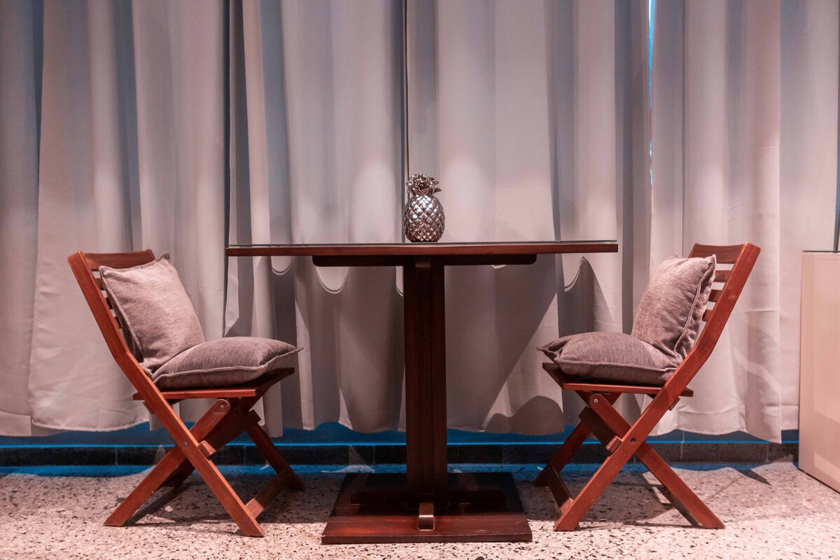 我們的公寓自然光線充足,除了所有的設施外,您還可以欣賞到美麗的海景。公寓配備了您所需的一切,讓您住得舒適愉快,位於一個美麗、安全且有許多景點的地方。它有一個陽台,您可以欣賞美麗的景色。在公寓內,您可以接待朋友,享用優質的朗姆酒和雪茄。我們在公寓內提供 24 小時免費網路。
