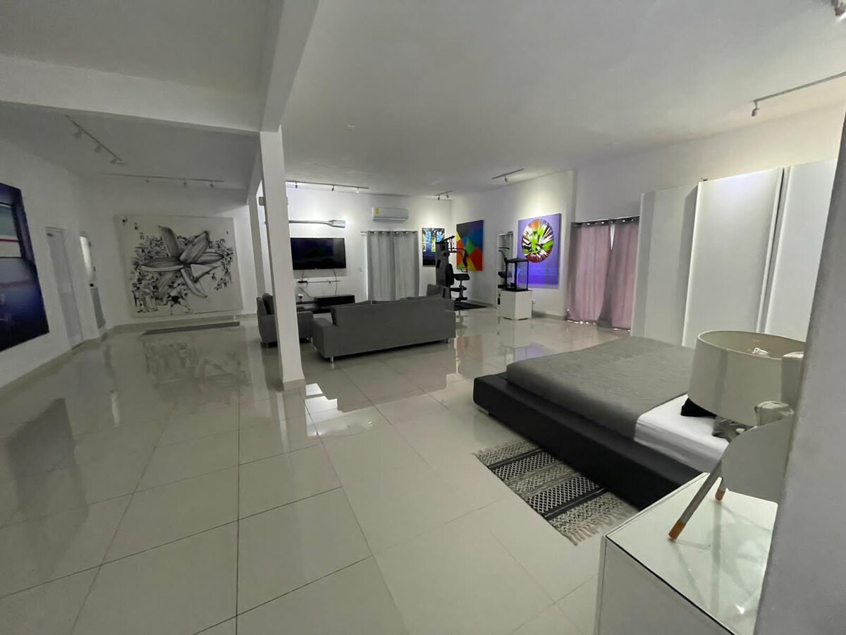 Apartamento tipo loft moderno, estilo minimalista en Miramar, La Habana, terrazas amplias con buenas vistas panorámicas al aire libre, cercano a numerosos lugares de interés como restaurantes privados (paladares), centros comerciales, cafeterías, bares, centros nocturnos. Tiene muy fácil acceso a otros puntos de la ciudad, es un lugar muy tranquilo y seguro. Tiene Wifi Permitido fumar solo en espacios al aire libre.