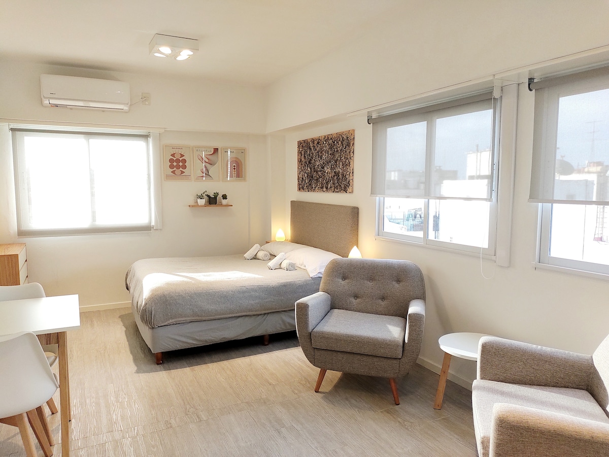 Brand new studio apartment with kitchinette, bathroom and balcony with great views in the heart of Recoleta. Cool modern decoration, fully equipped and safe. SmartTV with cable and Netflix (login with your account). Building with great facilities: heated indoor pool, outdoor pool with solarium, spa with massage room and sauna, and gym. Walking distance to the best restaurants, bars and cafes, as well as to bus and subway station.