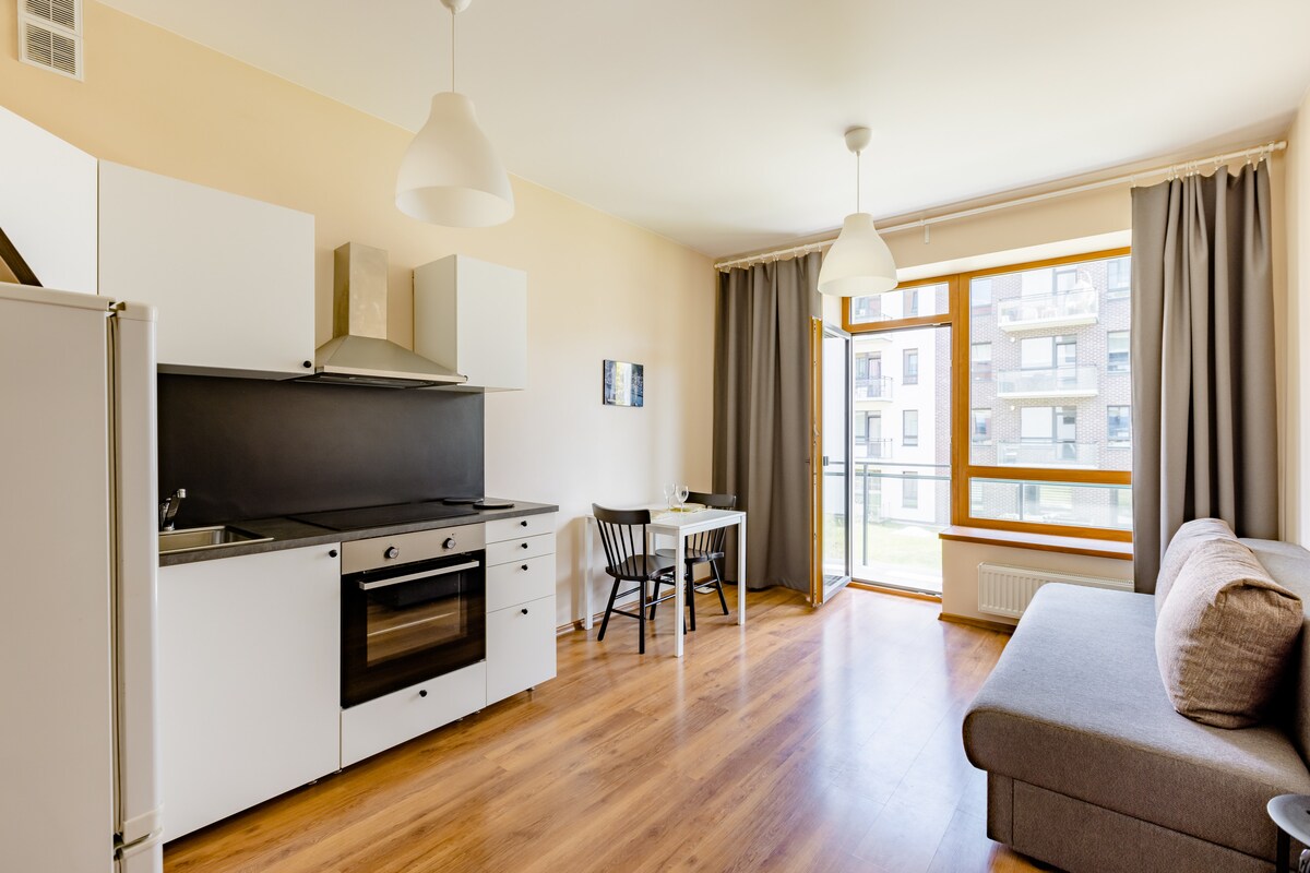 公寓位於新開發區域(維爾紐斯商務中心) ,靠近老城區。 距離日式花園9分鐘,步行25分鐘即可抵達老城區,步行10分鐘即可抵達EUROPA商場。 以斯堪的納維亞風格裝飾-舒適、輕鬆和現代化的公寓。 面積為49平方公尺,有獨立的臥室、帶廚房的客廳、陽臺。 從休閒到工作或長期住宿,最多可入住3人! 停車位為街邊停車位,周一至周六(8.00 - 20.00)需支付1歐元/1小時