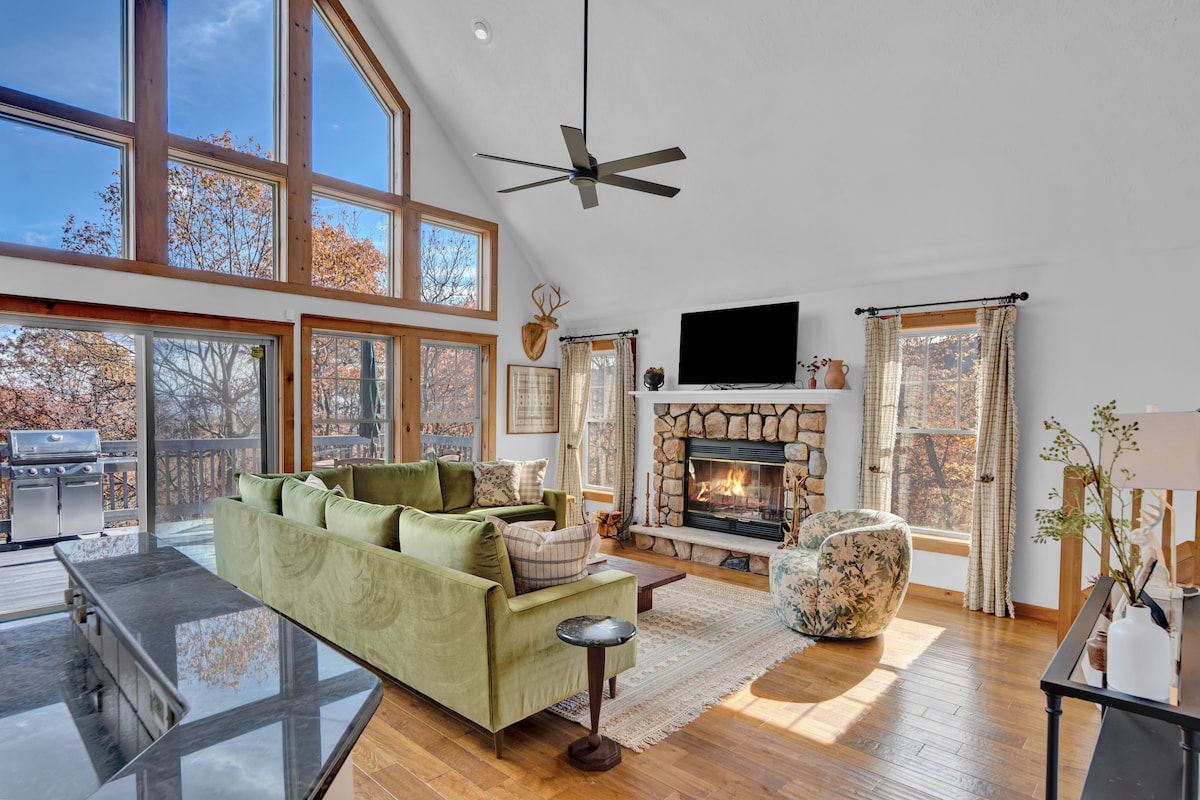 我們的小木屋坐落在2英畝的私人土地上,俯瞰山谷和小溪,距離購物僅4分鐘車程,距離駱駝峰、卡拉哈里和大狼小屋(Great Wolf Lodge)只有很短的車程。舒適的客廳、開放式閣樓和戶外區域空間寬敞。 在寬敞的露臺上享受私人熱水浴缸,欣賞迷人的景色,還有台球桌和乒乓球桌,讓您在室內享受樂趣。聚集在戶外火坑周圍,或在室內壁爐旁享受舒適。這間真正的小木屋的溫暖使其成為全年最受歡迎的小木屋!