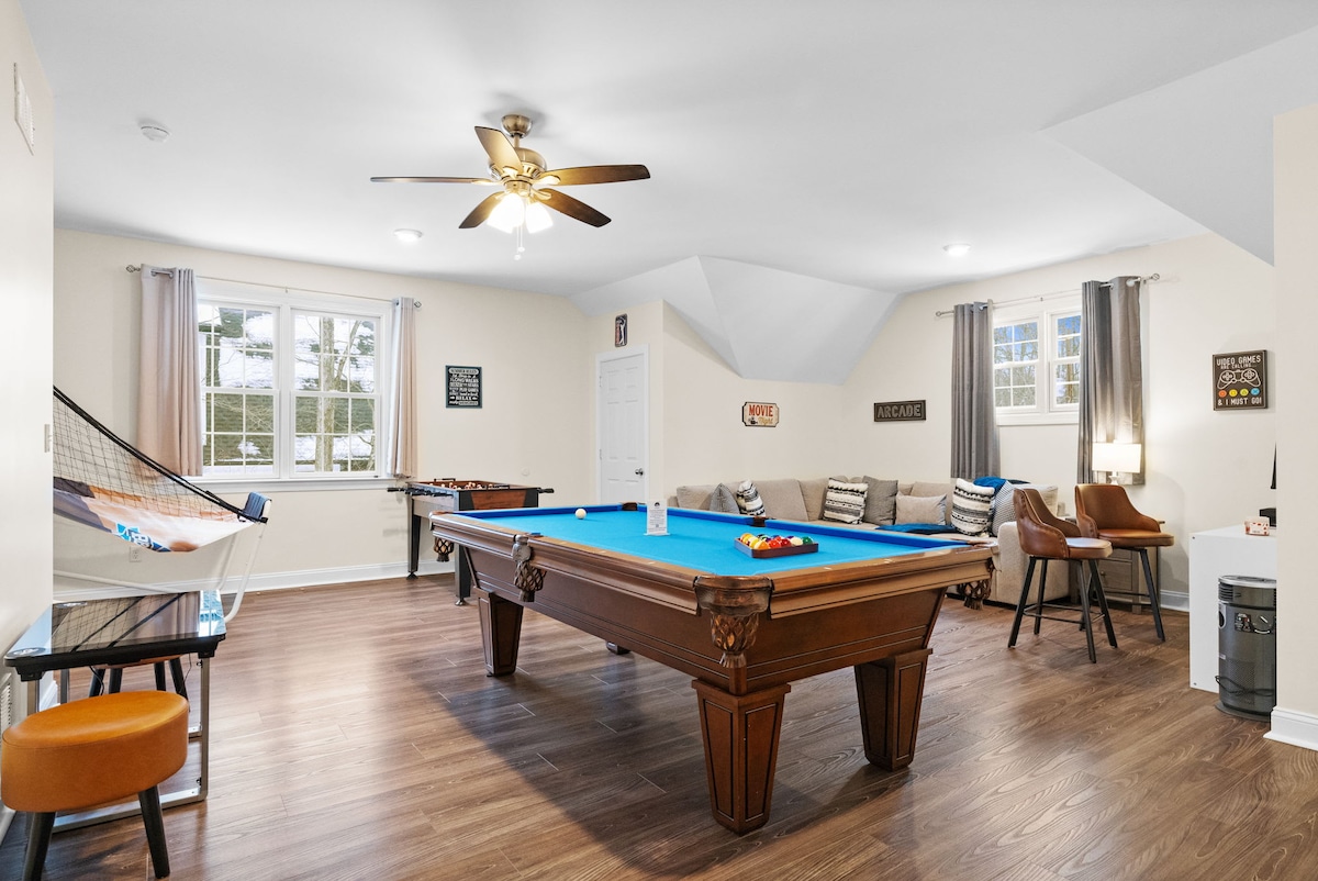 Retreat to this five bedroom Poconos getaway in the heart of Towamensing Trails 5 minute walk from the community lake house. Surrounded by trees and built for families, this home features a private hot tub, a large wraparound deck, a stone-fireplace great room, a game room with pool table, and a fully stocked kitchen for real meals and real memories. Guests enjoy access to the community lake, beach, and outdoor pool, plus quick drives to the region’s top ski slopes, parks, and attractions. This