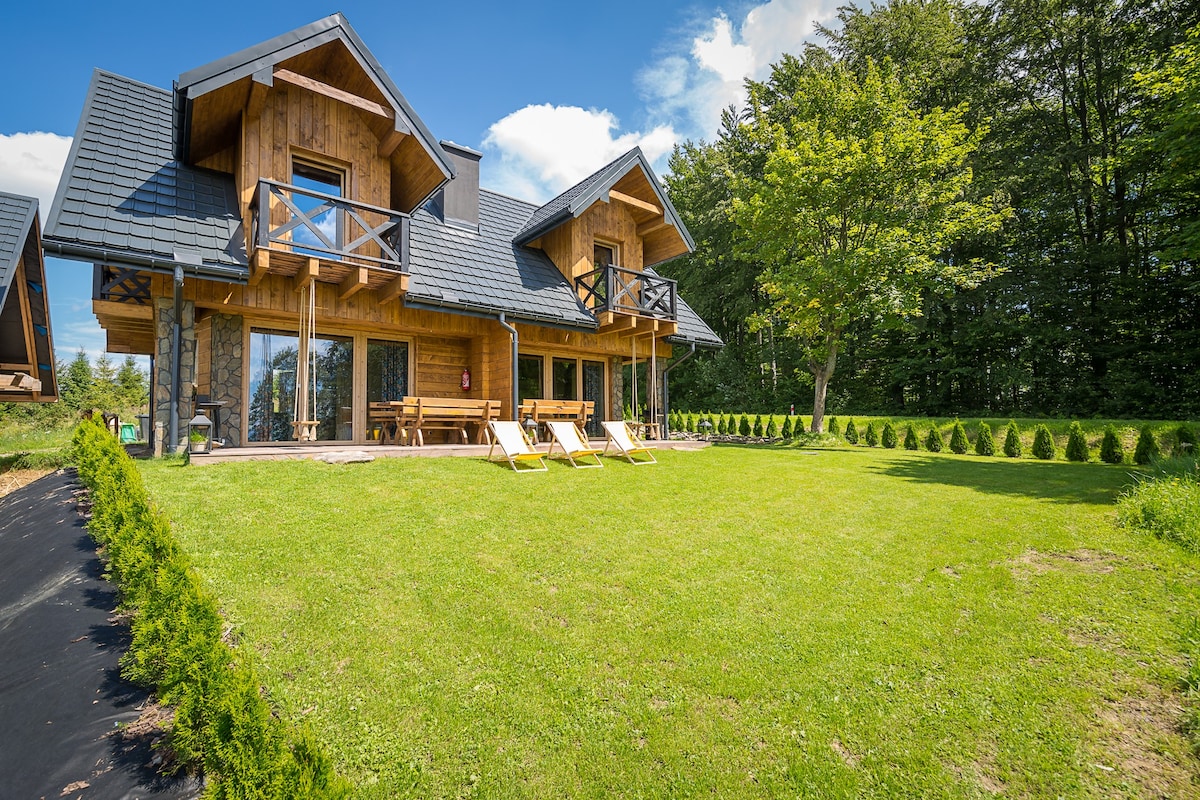 Lesne uroczysko is a fully equipped log house with a large garden and forest for your exclusive use. There are no visible neighborhood around but it is still close to the Cisna town or the main walking trails. The house is surrounded by nature and offers magnificent view of the forested Bieszczady Mountains. Here feasting together, singing by the fire, lying on a hammock or long conversations under the stars take place in complete harmony with nature, and every moment spent is magical.