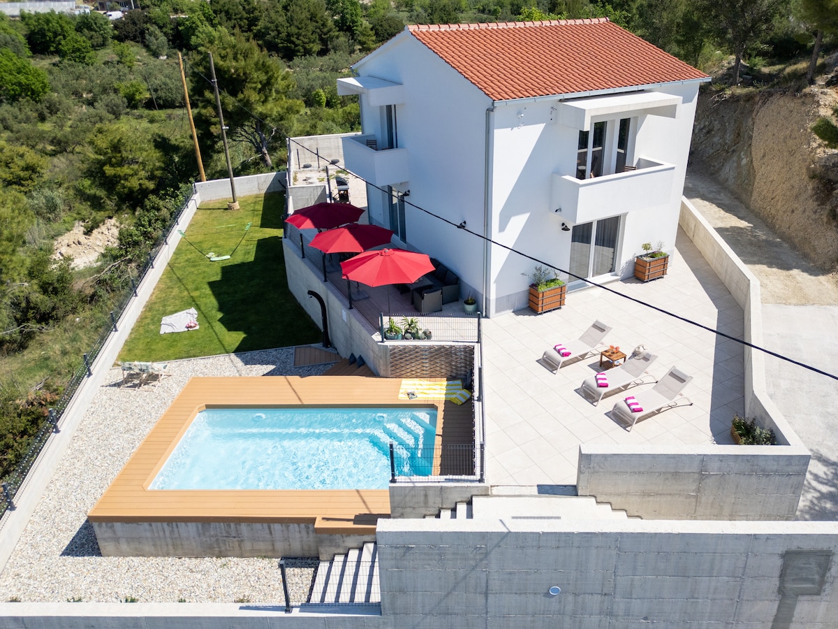 歡迎來到我們全新的X別墅,位於安靜的山頂上,俯瞰附近的斯普利特(Split)鎮、大海和島嶼。 別墅有3間臥室,兩間配有雙人床,一間配有2張單人床, 4間浴室和驚人的大廚房,您可以準備任何夢想中的餐點:) 我們最自豪的是我們的露臺,露臺上有溫水泳池,可俯瞰大海、島嶼、附近的城鎮和村莊以及達爾馬提亞最大的城鎮-斯普利特。 我們熱切期盼成為您的房東:)