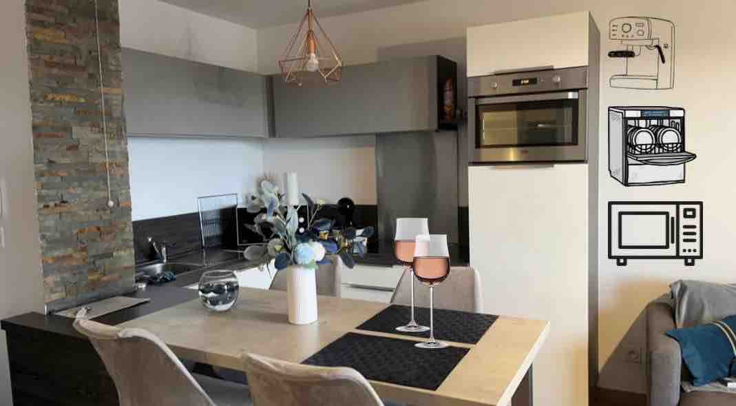 迷人的 2 房小公寓,無對面。 設備齊全,可逆式空調,一間客廳與設備齊全的廚房,一間帶淋浴和廁所的浴室,一間帶儲物空間的臥室。 10 平方公尺的露台,可欣賞海景和山景,您可以在這裡安靜地享用開胃酒。 四樓,有電梯、安全住宅和私人停車位。 巴斯蒂亞 (Bastia) 的一個非常安靜的新街區。 公寓距離巴士站 2 分鐘。 靠近許多商店