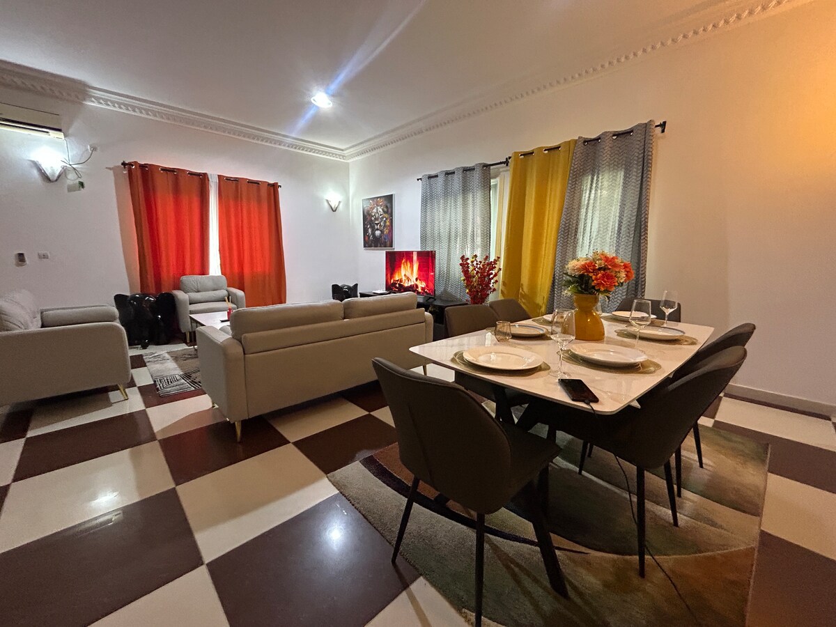 大型2臥室房屋客廳位於Ngoyo ,步行3分鐘即可抵達Ngoyo Centrale Market。 非常實用,而且很新穎 我的公寓非常適合家庭、情侶、獨行者和商務差旅人士。 在這裡,您很安靜,會有賓至如歸的感覺。 現代化的全室空調房屋: -02間臥室, -02間配有熱水器的浴室, -01客廳和餐廳, -01設備精良的廚房, -01冷凍水箱, -01免費停車位。
