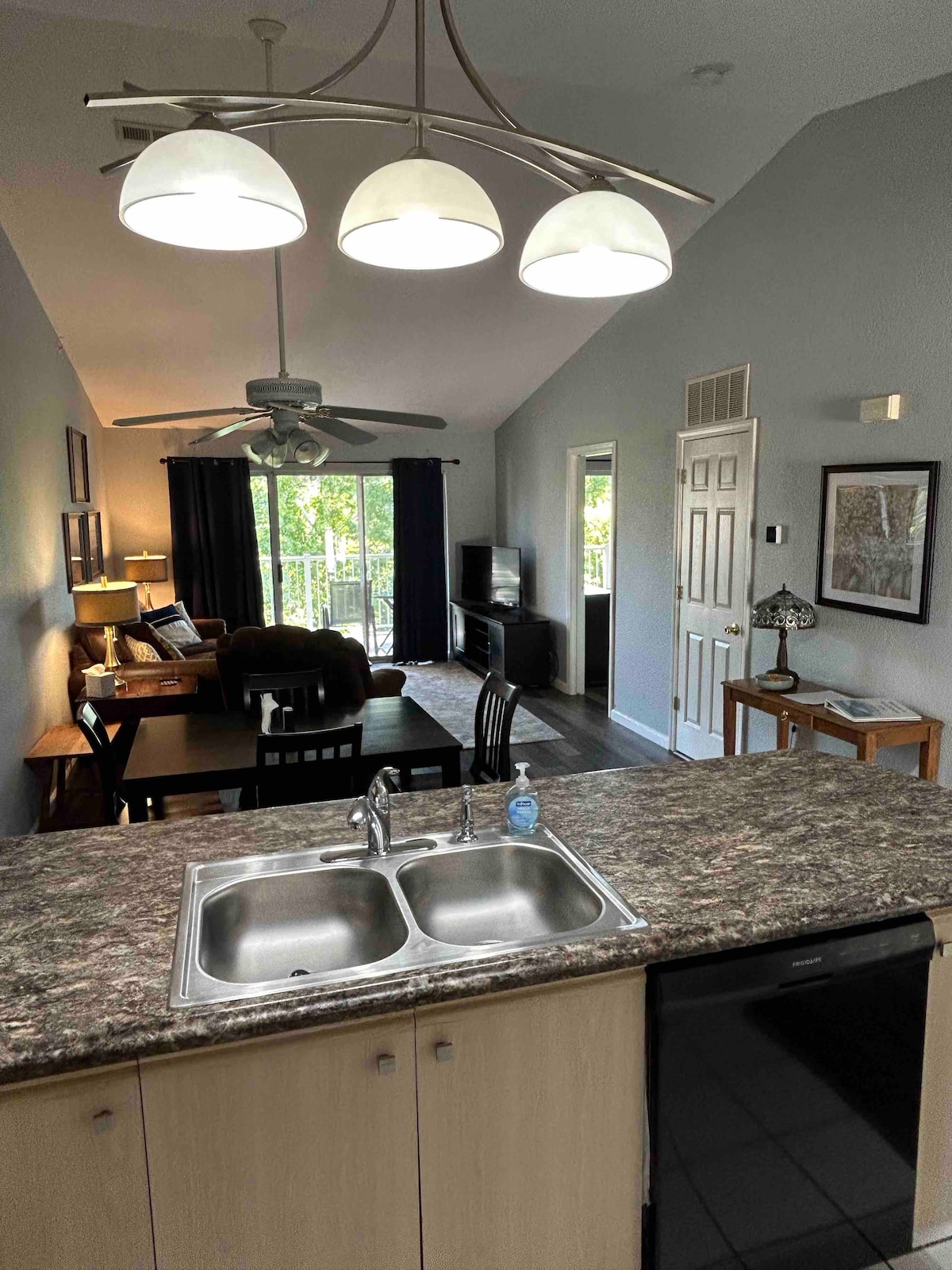 享受布蘭森的風格和舒適! ! 1間臥室/1間浴室客廳、餐廳和全套廚房。 廚房備有充足的烹飪用品。 公寓提供洗髮精、肥皁、咖啡、全套廚房、毛巾、沙發牀、有線電視、免費Wi-Fi。 位於17號發球區俱樂部會所附近的公關社區。 高爾夫折扣為每人每輛高爾夫球車60美元。 將車輛停在前門外。 還有網球和皮克球。 Pointe設施包括室內/室外泳池、健身室、烤架和酒吧。