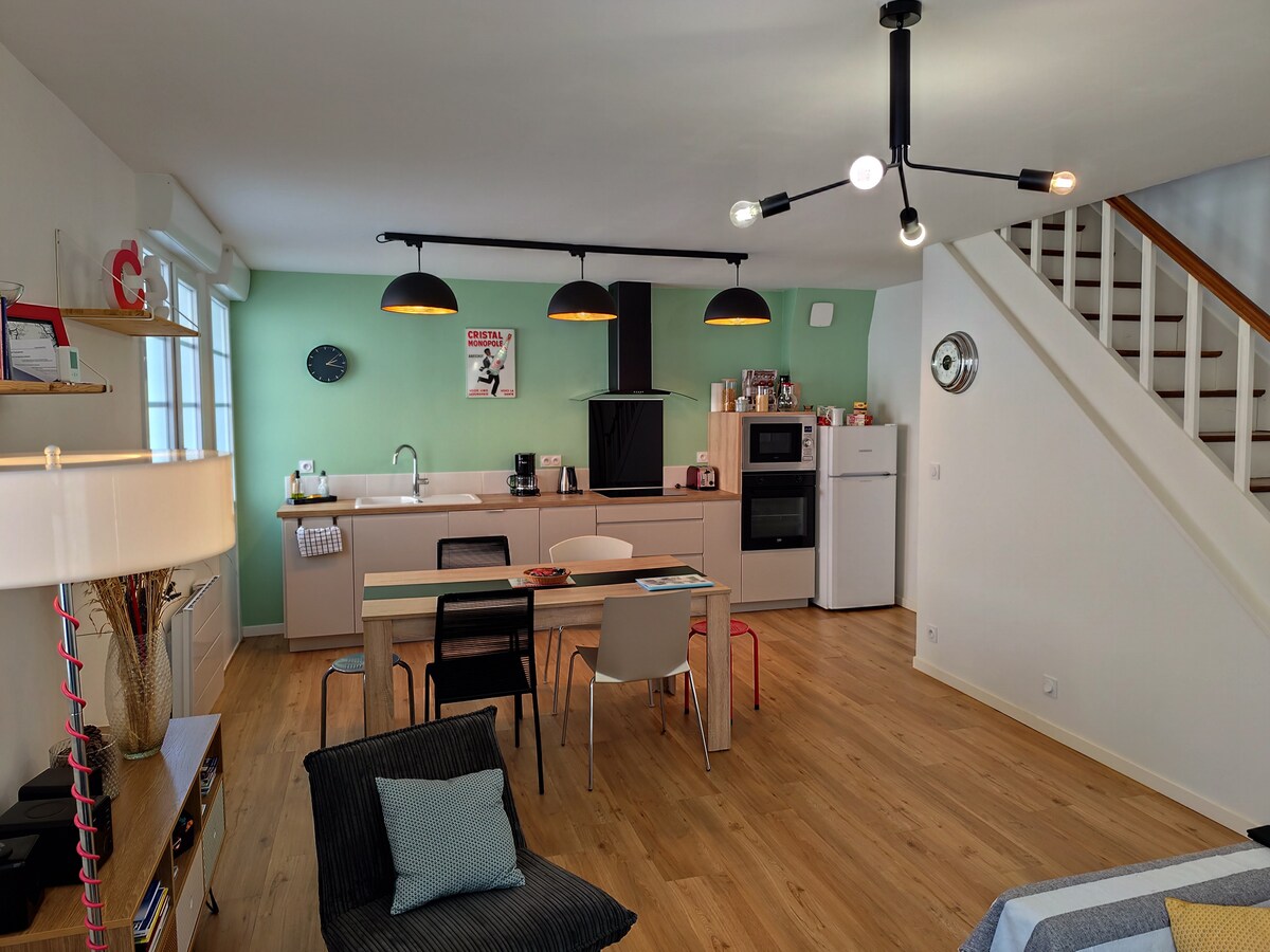 180平方米的大型獨立設計閣樓,在翻新的舊酒窖(藝術家之家)中有100平方米的室外空間。 您可以在壁爐旁放鬆身心,在大型午餐桌上分享友好的時光,設備齊全的廚房,以及臥室或閣樓(天花板下1米)的舒適睡眠安排。 夏天,你可以享受露天平台及其配備烤盤的廚房。 6月1日至9月15日期間,可使用公共庭院的溫水泳池。