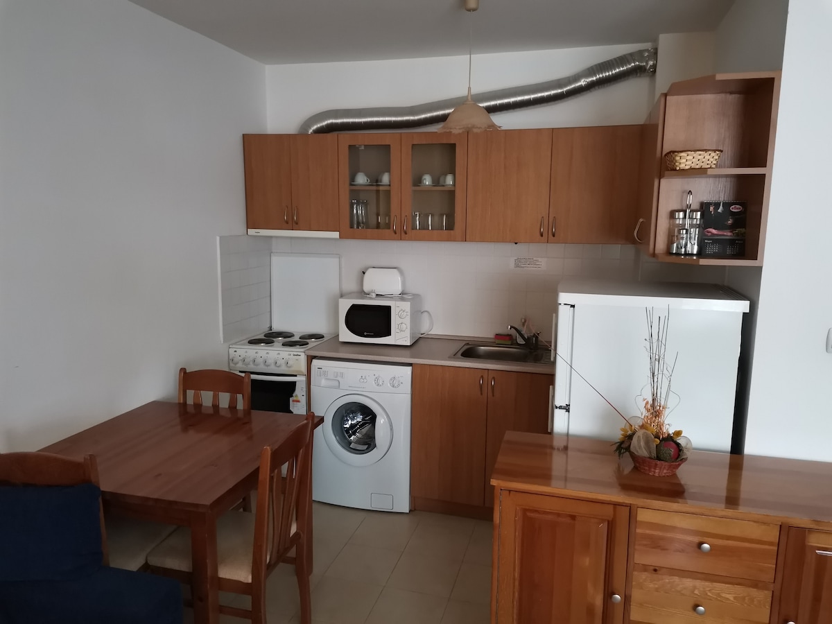 在平靜且善於溝通的小地方享受舒適的小公寓。 您可以使用一間臥室,可提供嬰兒床、一間寬敞的客廳、一間配備齊全的廚房和每間房間的電視。 房客可使用免費私人停車位。