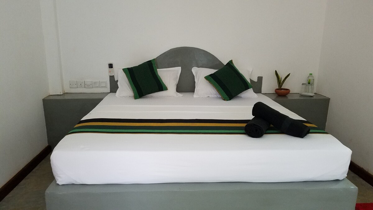 這間舒適的生態小屋配備所有現代舒適設施,包括熱水淋浴,步行即可抵達Sigiriya和Pidurangala巖石,非常適合喜歡在大自然中度過時光的情侶或小家庭。 這間小屋是生態度假屋的一部分,坐落在4英畝的熱帶森林中,到處都是本地野生動物和許多鳥類。 房價包含早餐,其他餐點可從我們的菜單中訂購。 我們有一位優秀的廚師,他製作最美味的當地和西式菜餚。