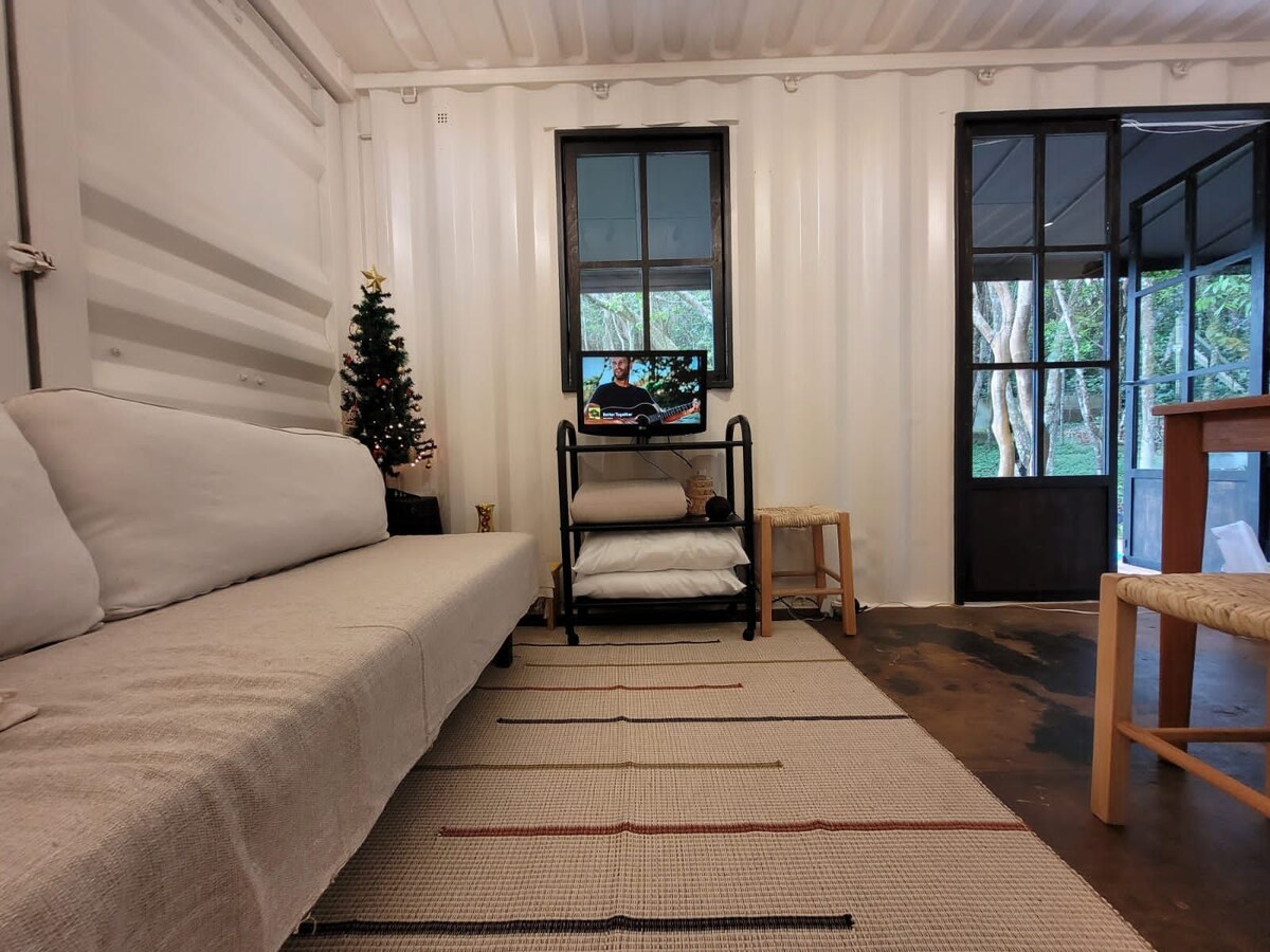Casa studio é um conceito de espaço moderno integrado sem paredes internas. Localizada entre 3 belas praias a poucos metros de distância, equipada com ar-condicionado, smart TV, aquecimento solar, cozinha completa, jardim com mesas e área de lazer. O bairro histórico de SC, Armação de Itapocoroy é uma enseada berço da colonização européia. Morrarias verdes encostam no mar. A algumas quadras bares e restaurantes oferecem uma gastronomia tipica. Oferecemos café da manhã a parte.