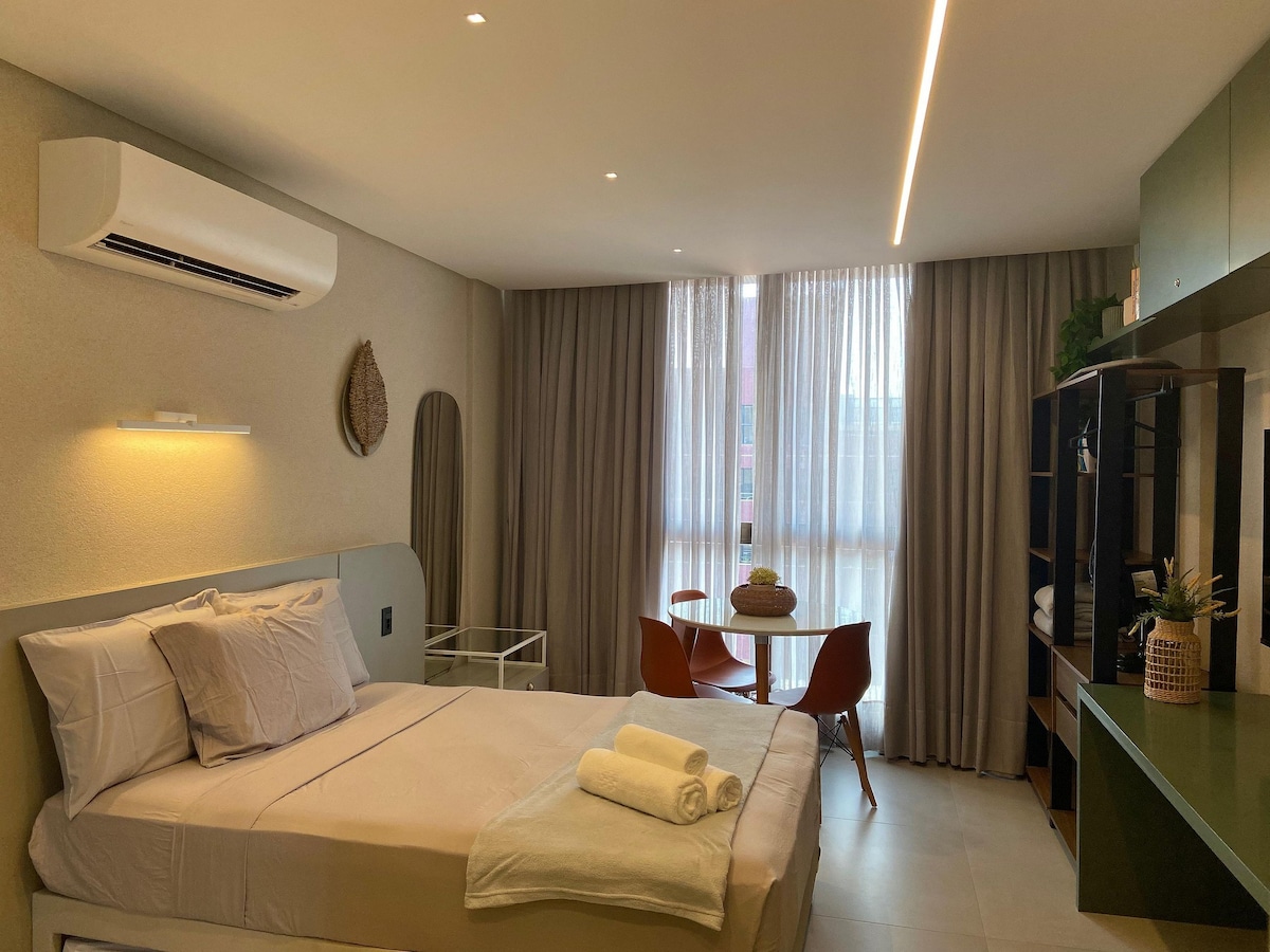 您將入住João Pessoa設備最齊全的公寓,配有無邊際泳池和屋頂海景、電影院、兒童區、遊戲室和辦公空間。公寓內設有電磁爐、微波爐、Nespresso 咖啡機、迷你冰箱、各種廚房用具、櫥櫃、舒適的床、智慧電視和 WiFi,為您提供完整的住宿設施。所有這些都距離著名的坦巴烏海灘僅一個街區。