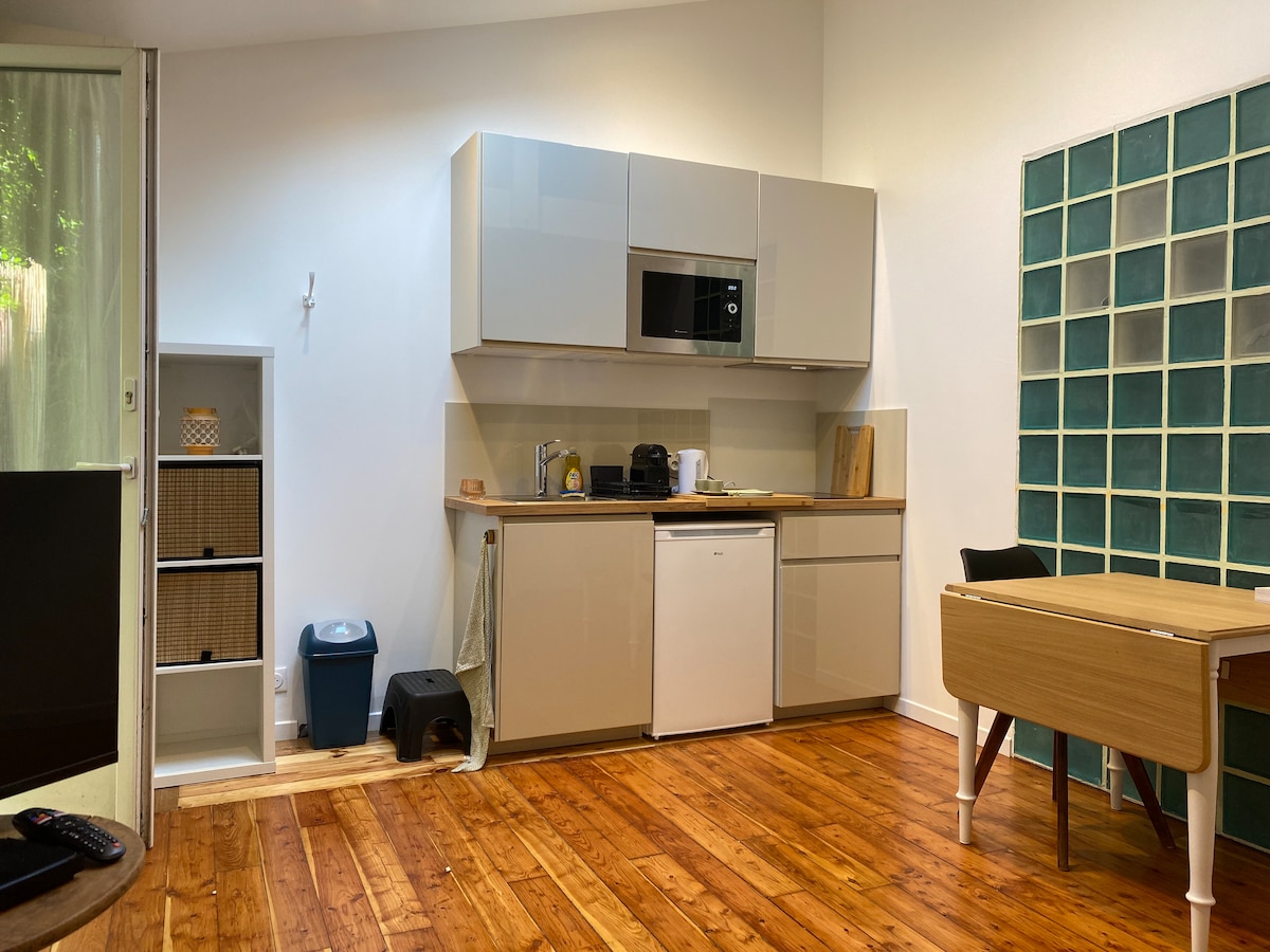 享受優雅的中心住宿。 豪華單間公寓,獨立花園,位於市中心,距離巴黎30分鐘。3 條線路通往巴黎:RER©️、H 和 J。 非常適合情侶或商務差旅人士入住。26 平方公尺的單間公寓,附 700 平方公尺的私人花園,與第二套公寓共用。廚房、浴室、58 吋智慧電視……使用密碼自助入住。
