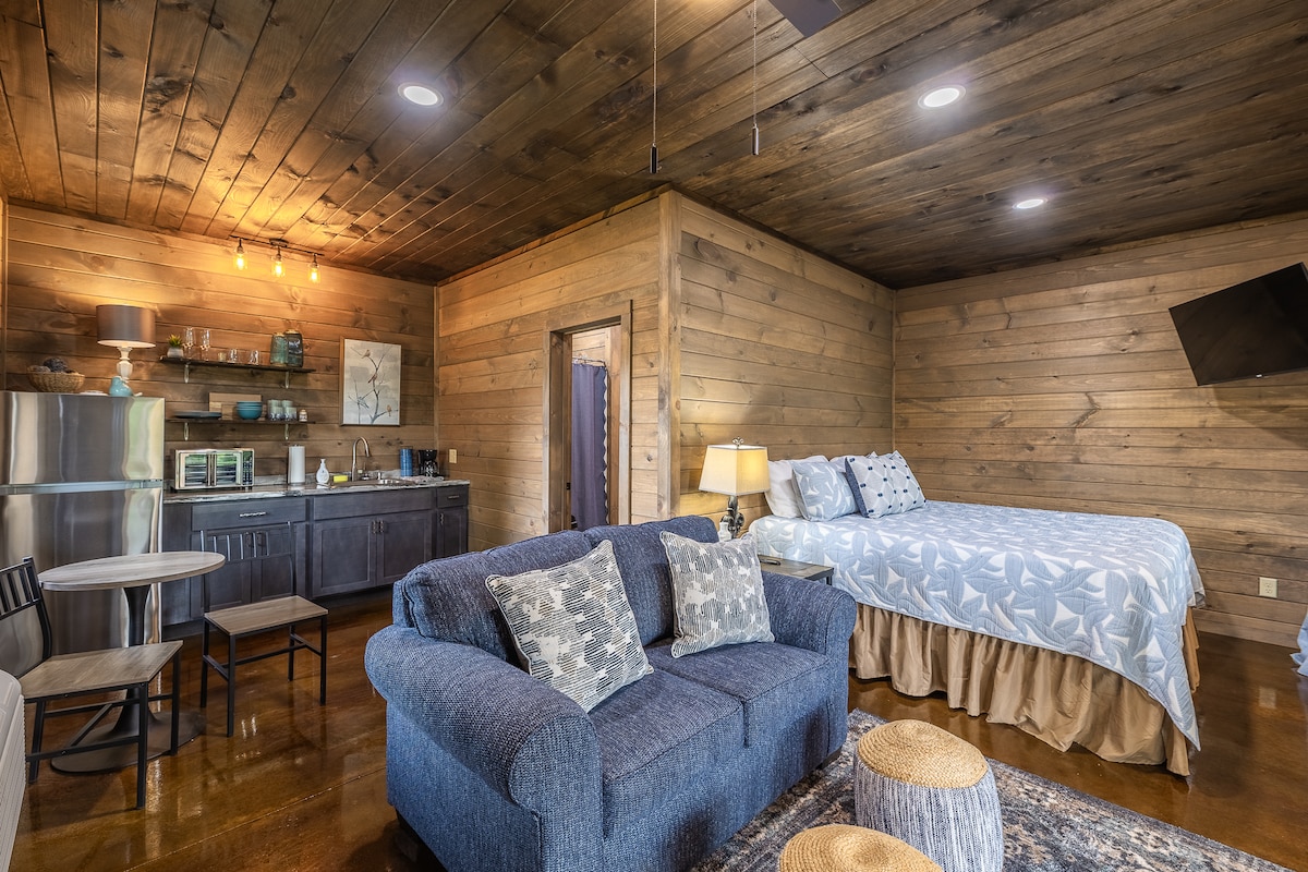 BRAND NEW ❕ Welcome to your next escape for 2 at Rivers Edge Hideaway! This cozy cabin includes a comfortable king sized bed, smart tv, a relaxing sitting area, convenient kitchenette, and a large, fully screened-in porch. Overlooking the Black River, it’s the perfect place to slow down and enjoy quiet mornings, unwind after a day outside, and take in the beautiful sunset views. Whether you’re here for adventure or rest, this little hideaway is designed for you.