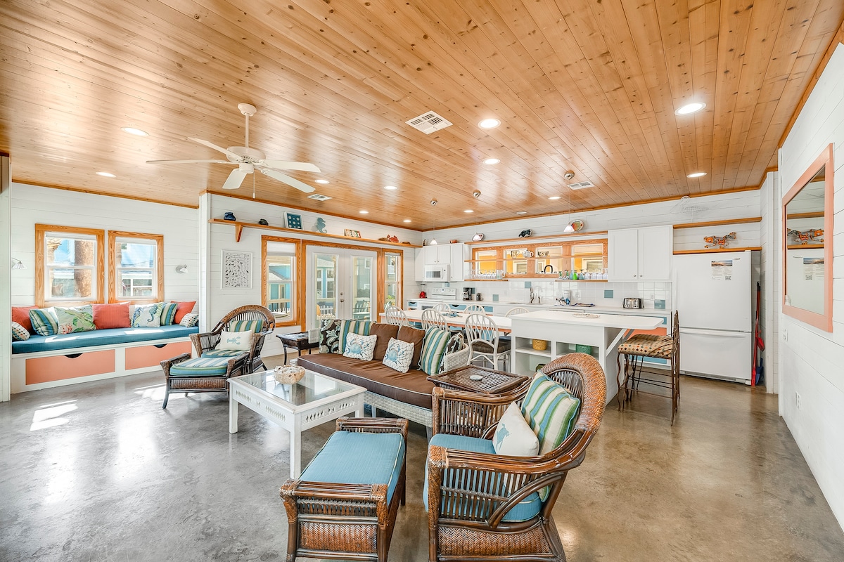 歡迎來到 HOOK, WINE, AND SINKER BEACH HOUSE。4BR/3.5BA高跷屋是您下次島嶼度假的絕佳住處。 ~私人溫水泳池,**無加熱費** ~令人驚嘆的後院,有充足的座位 ~免費6座高爾夫球車 ~我們的房客對我們的記憶床墊讚不絕口 ~在大型停車場,有鄰居的隱私 ~靠近海灘 ~設備精良的廚師廚房 ~低壓力、輕鬆退房 ~單一出口,交通量低的街道 ~布袋球板 ~無鑰匙入口