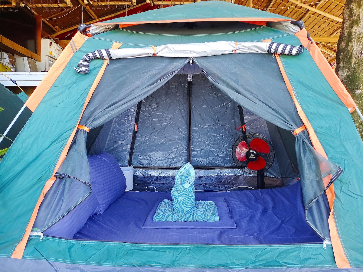 Spacious canvas tent set on a raised platform with comfy bed, mosquito net, and solar lighting. Mesh windows let in fresh air while keeping bugs out. Enjoy a private deck for morning coffee or sunset views. Shared bathroom nearby with eco-friendly amenities. Ideal for nature lovers seeking a peaceful, low-impact stay close to trails, beaches, or dive spots. A perfect blend of adventure and comfort under the stars.