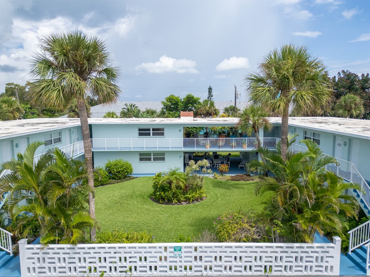 歡迎來到Poke Palace!這間寬敞的987平方英尺2BR/1B二樓套房位於可可海灘最繁華的地點之一!Poke Palace的優點是地理位置、景觀、活動,以及能夠步行前往許多地方,而無需開車……甚至不需要有車! 毗鄰世界著名的Ron Jon衝浪商店、可可海灘衝浪公司(Cocoa Beach Surf Company),距離海灘2個街區,就在幾家高評價餐廳的上方,您只需幾步路即可滿足您的所有度假需求!