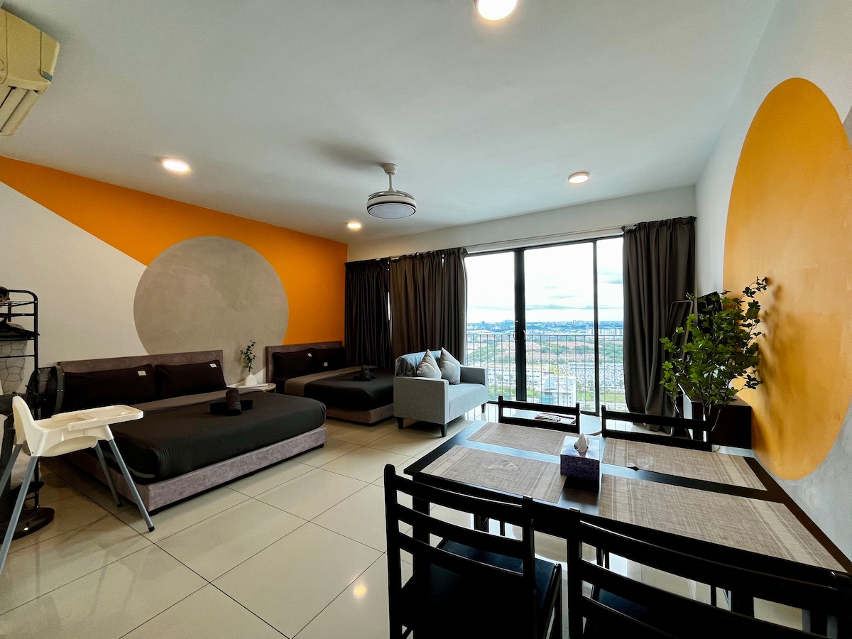 Oasis Ara Damansara中央商務區精明商務旅客的設計師套房。 設計精美的單位,配有1間臥室和1間書房。您會發現公寓配有優雅的客廳,配有實用的餐廳和廚房區域。 學習區域是我們單位的特別附加區域,專為商務旅客的需求設計。配合高速網路,您的網路連線可確保順暢的瀏覽體驗。