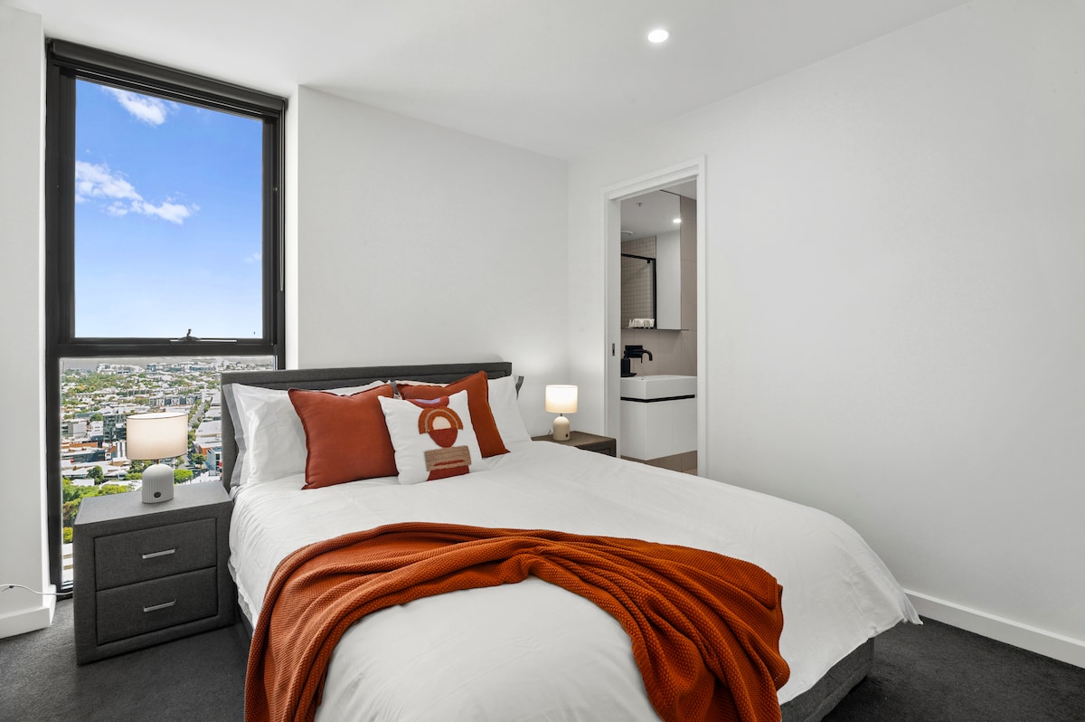 透過落地窗,在舒適的公寓中欣賞美麗的城市景觀。 這個現代化的空間最多可容納4位房客,非常適合情侶、小家庭、一群朋友或尋找舒適度假勝地的商務旅客。擁有家居舒適度和中心位置,非常適合短期和長期入住。 房源距離墨爾本許多熱門景點僅短暫車程。附近的電車網絡可輕鬆前往城市最具代表性的地標