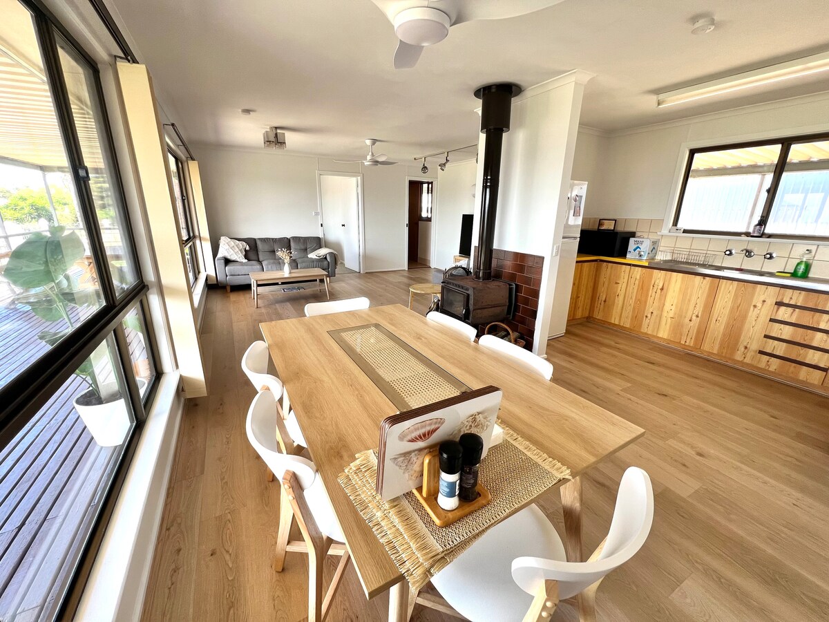 歡迎來到我們的1950年代海灘別墅,這是一座受到漢普頓啟發的翻新房屋。我們的大型一間臥室Airbnb位於下層。 維多利亞港坐落在約克半島美麗而古樸的地方。您會喜歡從臥室、客廳和露臺欣賞海景。如果天氣轉變,您仍然可以在客廳窗戶酒吧享用飲料和小吃,或在烤肉區舒適地享受美景。