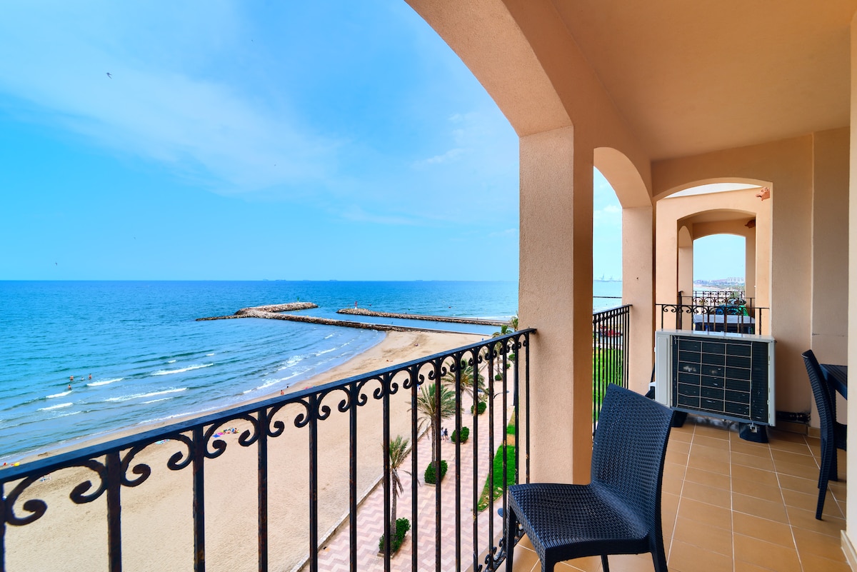 海濱一線的優質公寓。被稱為「小威尼斯」。 海景極佳,距離瓦倫西亞市僅4公里。 設備齊全,68 平方公尺,2 間臥室,2 間浴室,獨立廚房,客廳,WiFi,電視,陽台,車庫,電梯。主臥室和客廳配有冷暖空調。兩間房間均設有風扇。 位於超市和美食區前方。 如果您想擁有夢幻般的難忘住宿體驗,請入住這裡!