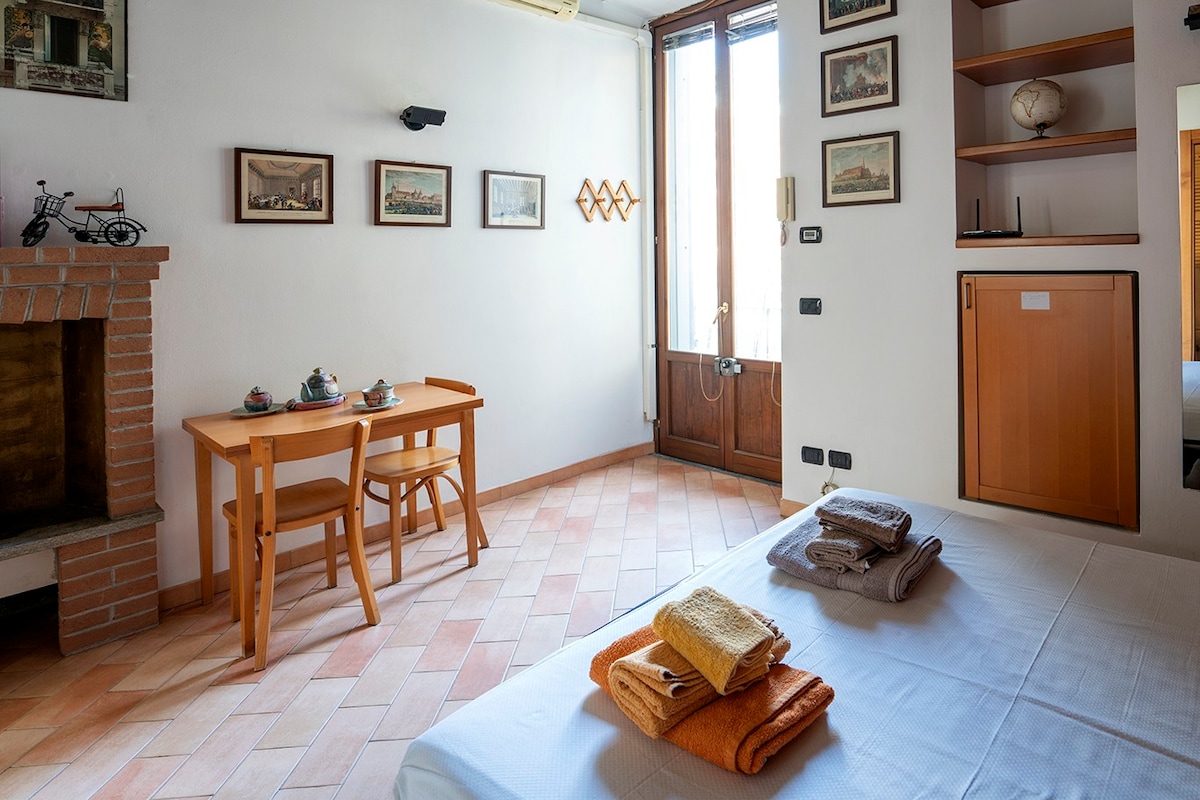 Uno spazioso bilocale con travi a vista appena ristrutturato. E' composto da un soggiorno con un delizioso camino e divano letto, una cucina (separata dal resto della casa), una camera matrimoniale con letto queen size ed un bagno con doccia.