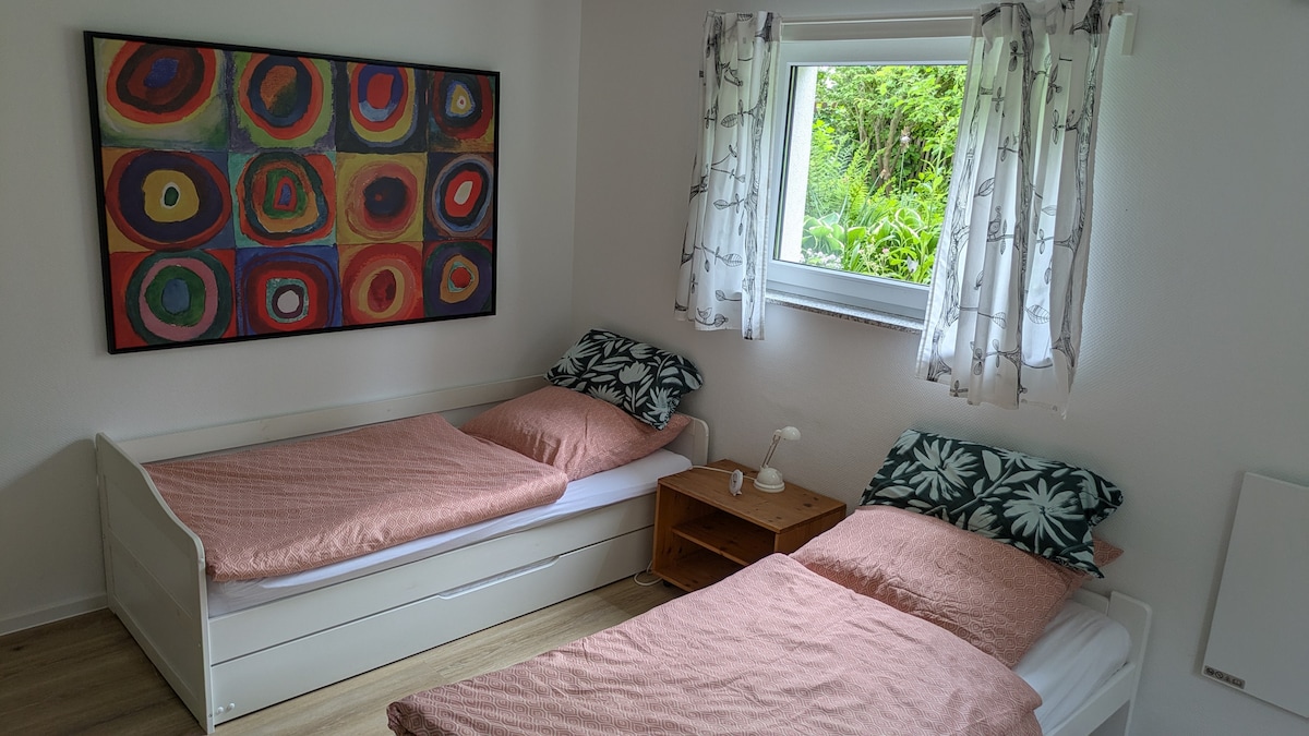 歡迎來到非常安靜的Steinhuder Meer。 公寓有獨立入口,提供設備齊全的廚房、帶獨立馬桶的大淋浴間和私人桑拿房。 房源直接位於Steinhuder Meer周圍的圓形路徑上。 距離湖泊的公共通道400公尺。 您可以在這裡開始使用我們的SUP。 使用我們的自行車,您可以在15分鐘內抵達Steinhude。 有足夠的空間容納2名成人和1-2名兒童。