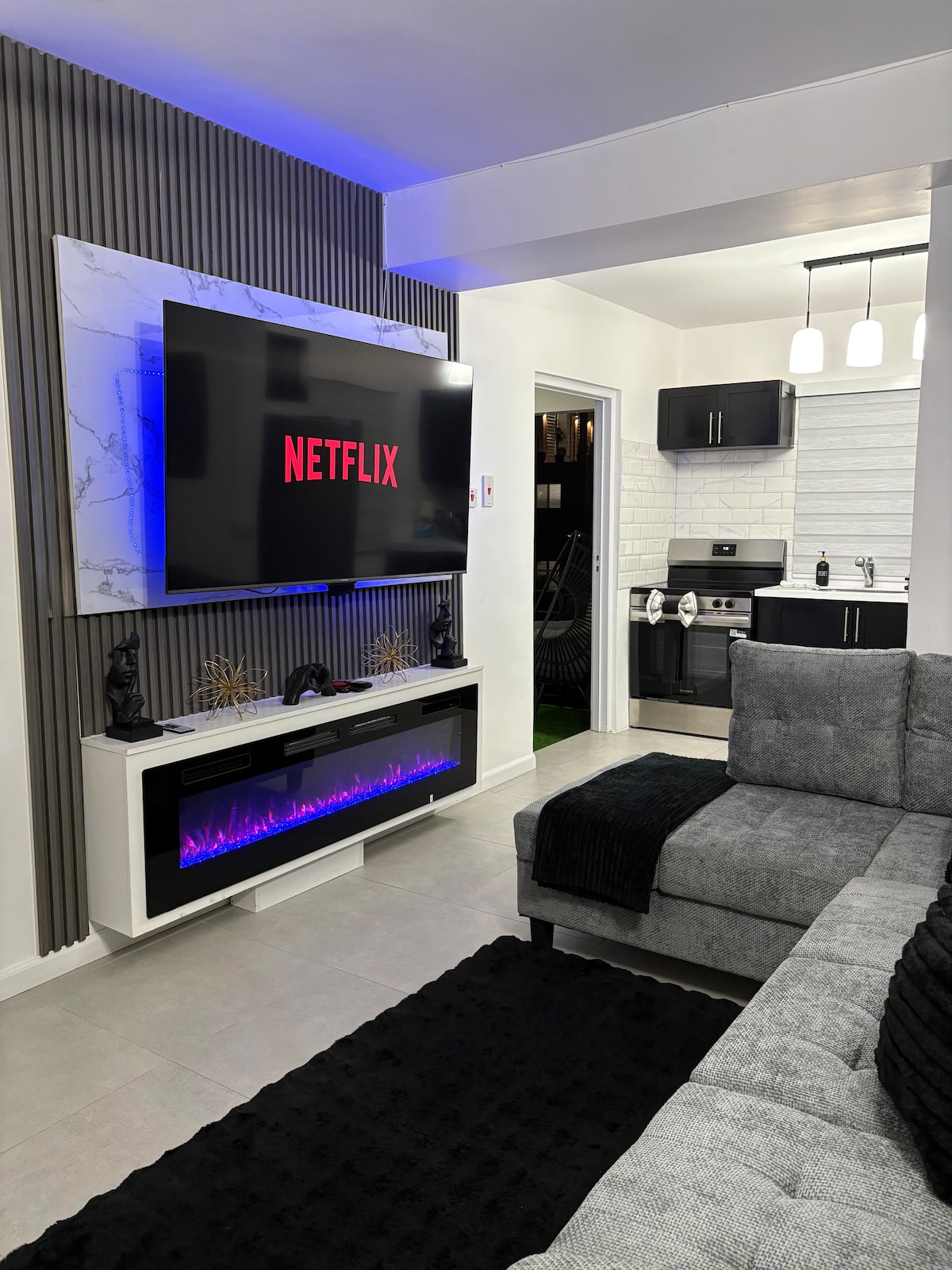 走進這間全新翻新的設計師公寓,感受現代風格與智能科技的融合。 這間位於市中心的度假屋擁有時尚的黑灰色內部裝潢、充滿活力的LED裝飾和智能家居功能,距離新金斯敦、半路樹、餐廳、商店和夜生活僅幾分鐘路程。 非常適合商務、休閒或追求舒適與大膽風格的情侶。