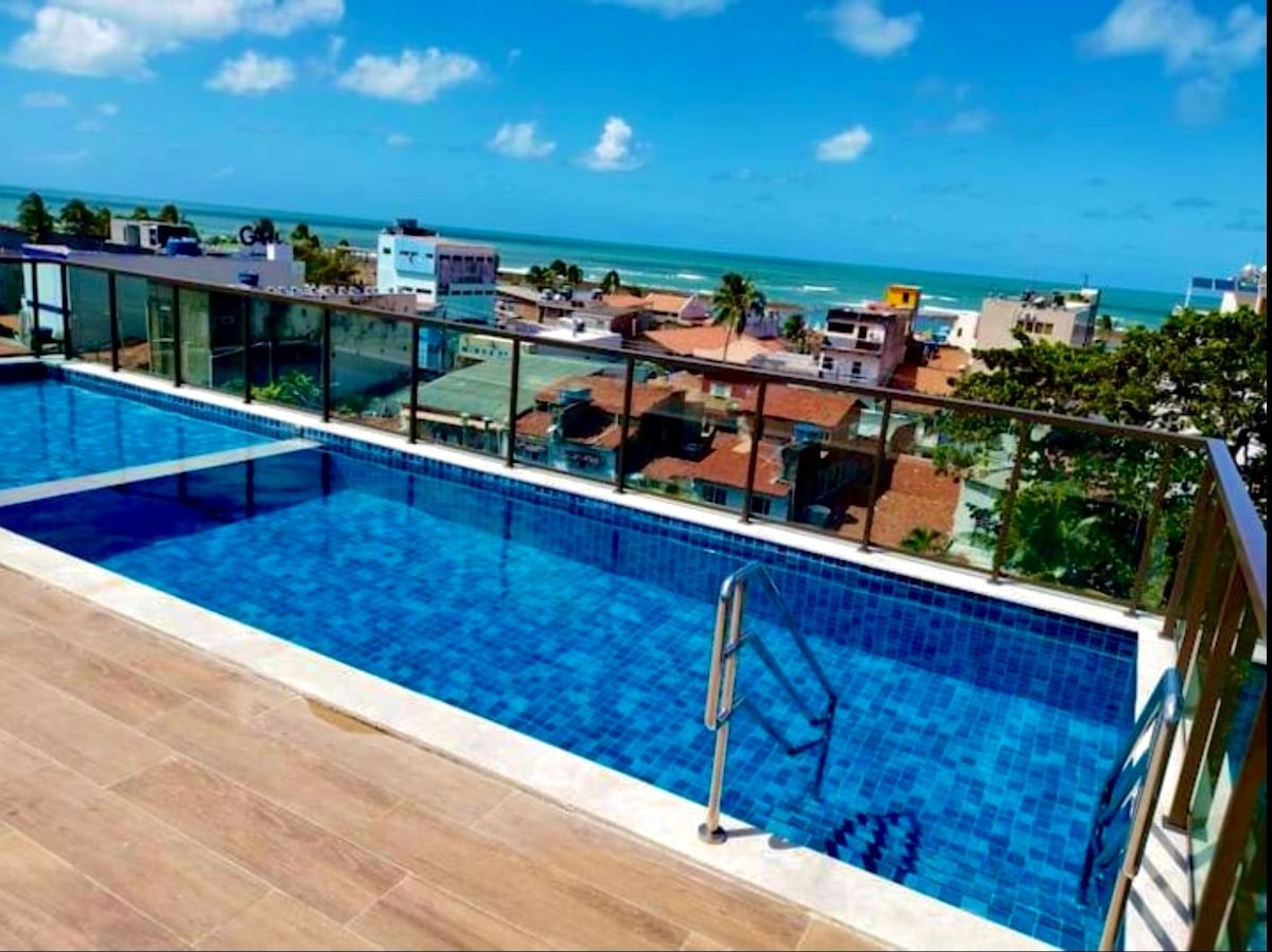 ✔️位於三樓的海景單位,距離沙灘僅 20 步之遙,步行 9 分鐘即可抵達位於 Porto de Galinhas 市中心(Vilinha)的著名 Rua das Sombrinhas 大街。 ✔️私人陽台可俯瞰海景、冷氣、55英寸智能電視、 泳池、健身室、輪流泊車位。 ✔️最多可容納 3 人,適合情侶入住,提供床單和浴巾。 ✔️在晴朗的日子,根據季節的不同,無需下床即可欣賞日出。