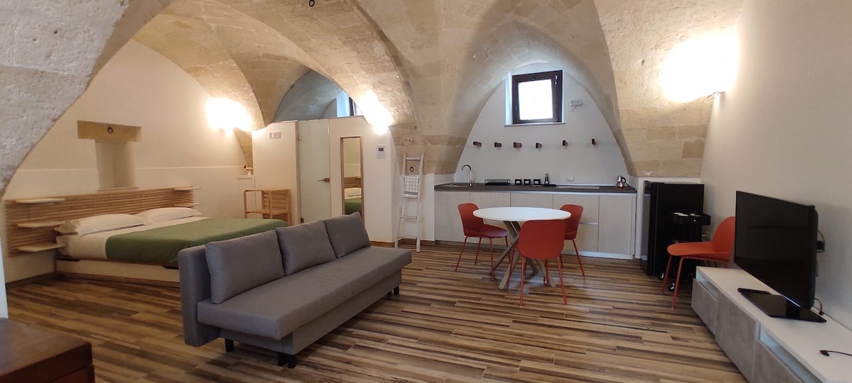 L'Armoniosa位於城堡最古老的區域之一,設有私人入口,分為兩層,面積約50平方米,將以溫馨精緻的環境迎接您。水泥地板、古老的天花板樑、古董家具、'fratino'桌子,使其成為放鬆時光的理想場所,讓您在享受現代舒適的同時,感受時光倒流的體驗,夏季涼爽,冬季溫暖,讓您度過難忘的時光......
