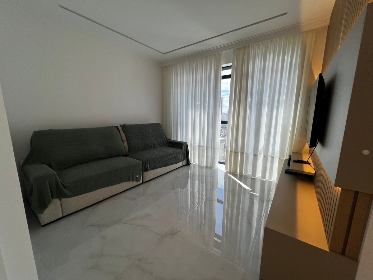 Modern comfort just steps from the sea! Just steps from the beach, this studio was designed for those who value comfort and location. It features a double bed, sofa, Smart TV, air conditioning, an equipped kitchen with integrated dining area, and a charming balcony with city view. The building offers a heated pool and jacuzzi on the rooftop, gym, and game room. Only 220 m from the sea and surrounded by great dining options. Book now and enjoy a complete experience in Meia Praia.