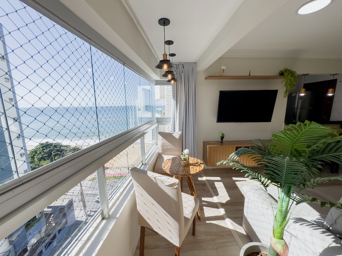 公寓面向大海,是伊塔帕裏卡海灘( Itaparica Beach )最好的地方。 步行10公裏即可抵達Praia da Costa ,穿過Itapuã海灘。 靠近超市、時尚酒吧和美食中心。 配備有線電視網頂、WiFi 500 mb、爐竈、熨鬥、餐桌、烤架、平底鍋、微波爐、攪拌機。 牀和浴巾。 想說,很高興在我們的空間接待您。 我們讓他考慮到他的舒適和休息,非常親切。