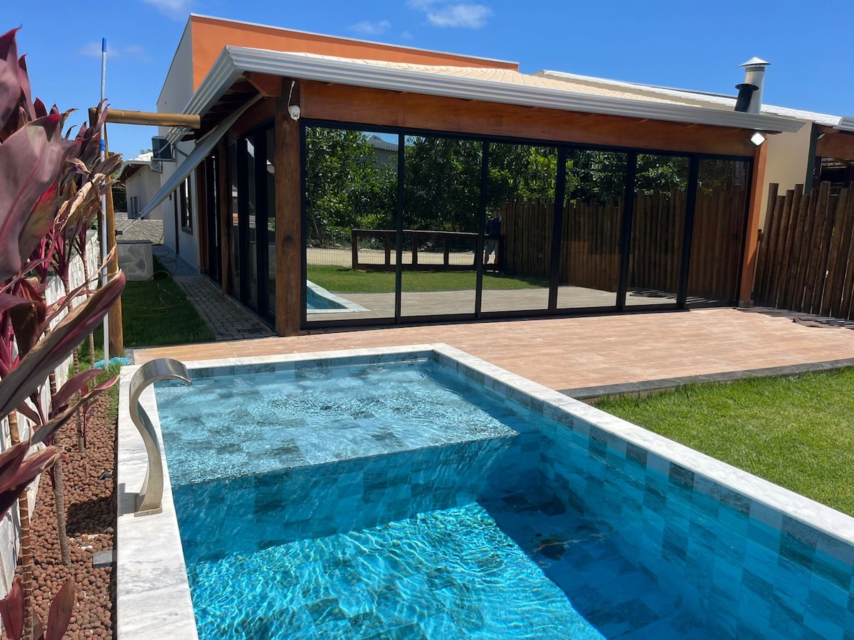 寬敞的新房子,寬敞的房間充滿活力! 距離海灘🏖450米,開車5分鐘即可抵達市中心。 - 4間配備分體式冷氣的全套房 ❄️ -清爽的泳池 -燒烤。 WiFi和智慧電視 - 床單:可額外付費使用。 別墅:客廳、廚房和餐廳整合在寬敞的環境中,非常適合家人和朋友聚會。 普拉多(Prado)、市中心和Beco das Bottrafas的最佳小吃攤,您可以在那裏享受極佳的美食。