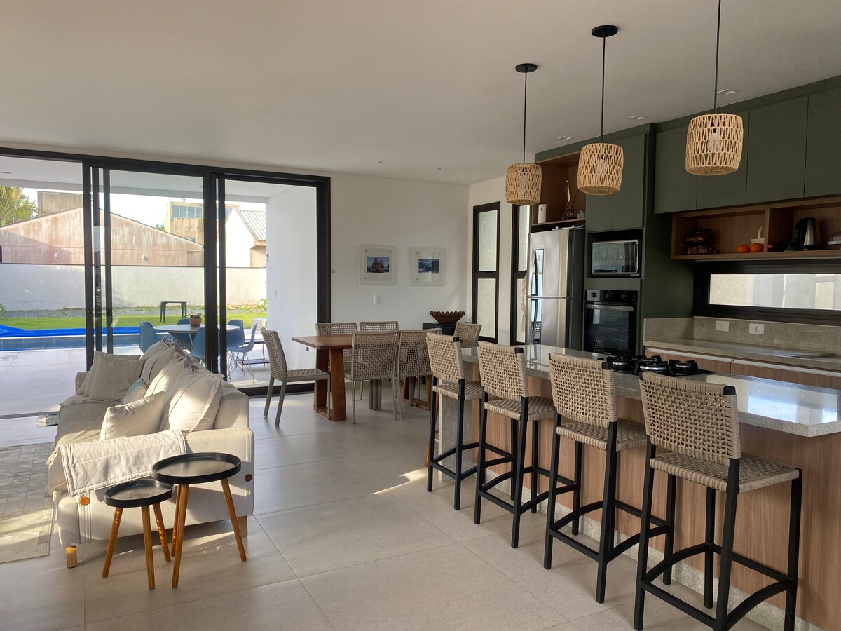 獨立一層房屋,最多可容納6人,擁有超現實的戶外區域,面向Barra do Saí海灘。只需攜帶食物、飲料和衣物,因為房子設備齊全。Wi-Fi、空調、床單、毛巾、洗髮精、護髮素、全套海灘用品、2臺配有IPTV的智慧電視、燒烤爐和2輛自行車,讓您隨心所欲地遊覽。室外區域配有鄉村風格的桌子、涼亭、室內按摩浴缸和溫水按摩浴缸、色光療法和令人驚嘆的私人電影院。我們歡迎寵物入住