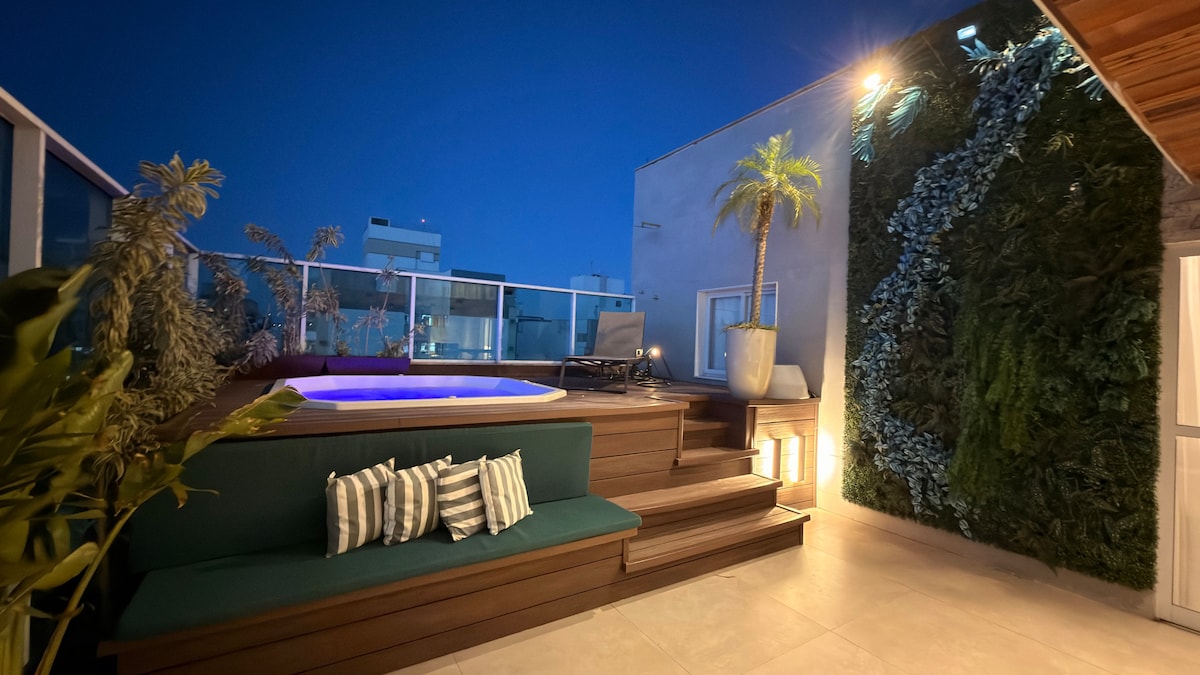 配有按摩浴缸和私人燒烤設備的複式屋頂