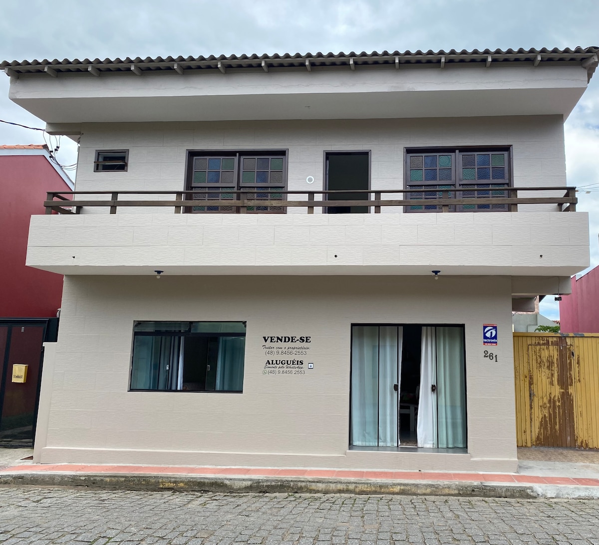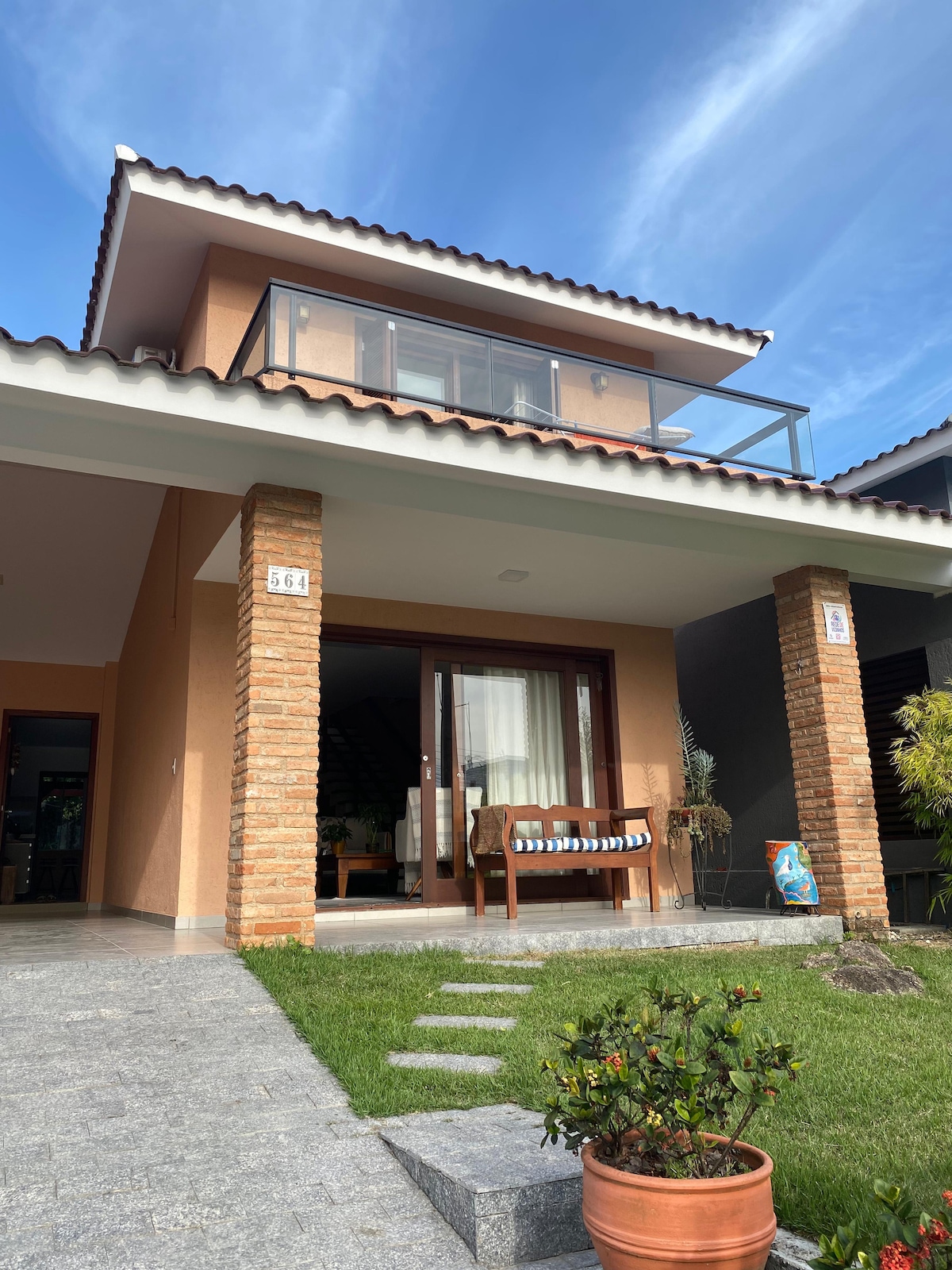 Amplia casa a 400 mts. de la playa y a 100 mts. del centrinho. Capacidad máxima para 6 personas. Acogedora, confortable y mágica. Excelente vista a la Laguna de Ibiraquera en el deck. Mirador en el punto más alto del morro con vistas al mar. Dormitorio principal en suite con cama matrimonial, 1 dormitorio con 5 camas individuales y baño externo. Entrepiso con 1 cama doble. Living y cocina. Ducha exterior y parrilla. Deck externo. Estacionamiento privado para dos autos. Wi-Fi bueno y seguro.