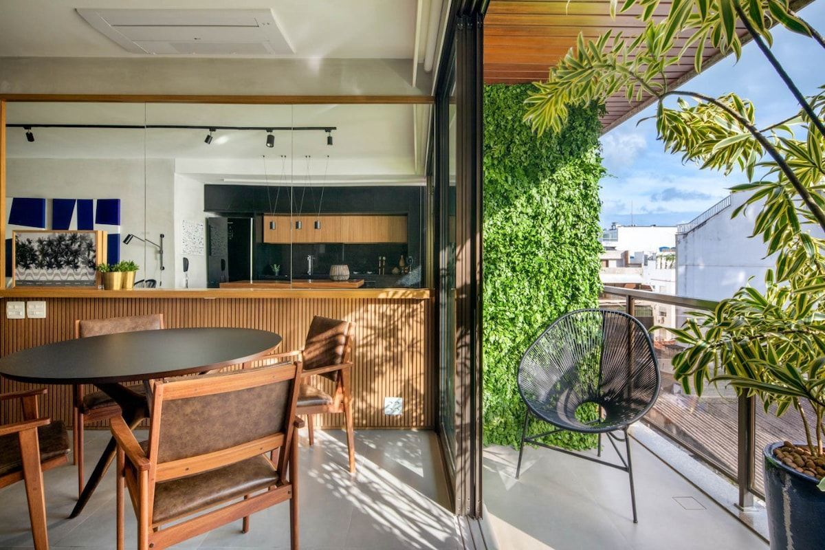 獨特的Loft,風格獨特,設備超級齊全,現代化,01張雙人床,01張沙發床,工作空間和Wi-Fi。 廚房配有電磁爐、微波爐和Nespresso咖啡機。全套服務區。 分體式空調。 隔音窗戶,位置非常好,前面,靠近酒吧、餐廳、市場、商店、地鐵和購物中心。靠近海灘,靠近自行車租賃選擇。 公寓內有停車位,兩部電梯(社交和服務)。