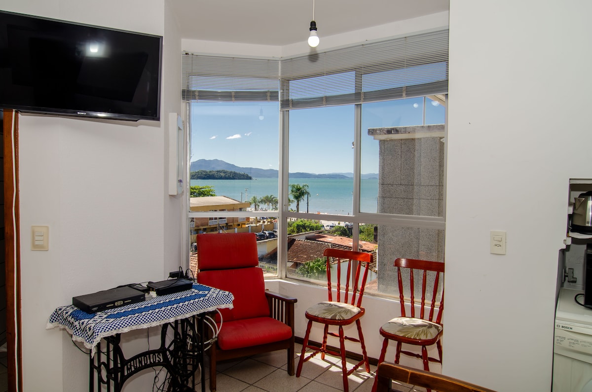 入住這個地理位置優越的房源,您的家人將離所有地方都很近。 在三樓俯瞰大海,有電梯,距離中部Canasvieiras海灘的沙灘20米。 房源有一間臥室,配有標準雙人牀、空調和櫥櫃。 完整廚房配有雙人沙發牀。 帶防護螢幕的Sacada。 Barbrasqueira na Sacada. 獨立車庫 公寓提供1個遮陽篷☀️和2張沙灘椅🏖️。 我們接受攜帶寵物。