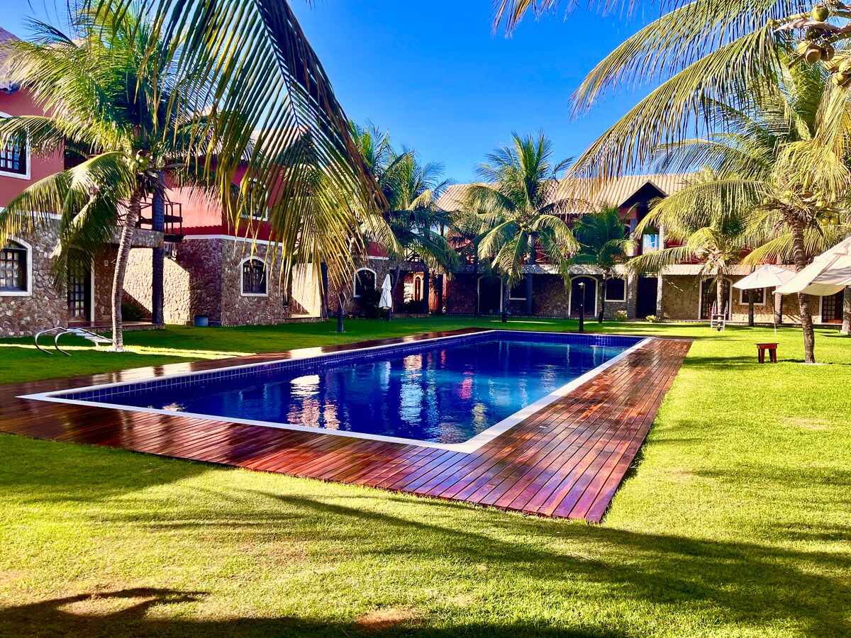 入住這個地理位置優越的房源,您的家人將離所有地方都很近。 大型私人休閒區。 帶泳池的公寓,可供孩子和成人使用。 舒適安全的地方 距離Canoa Quebrada最繁忙的海灘攤位非常近。