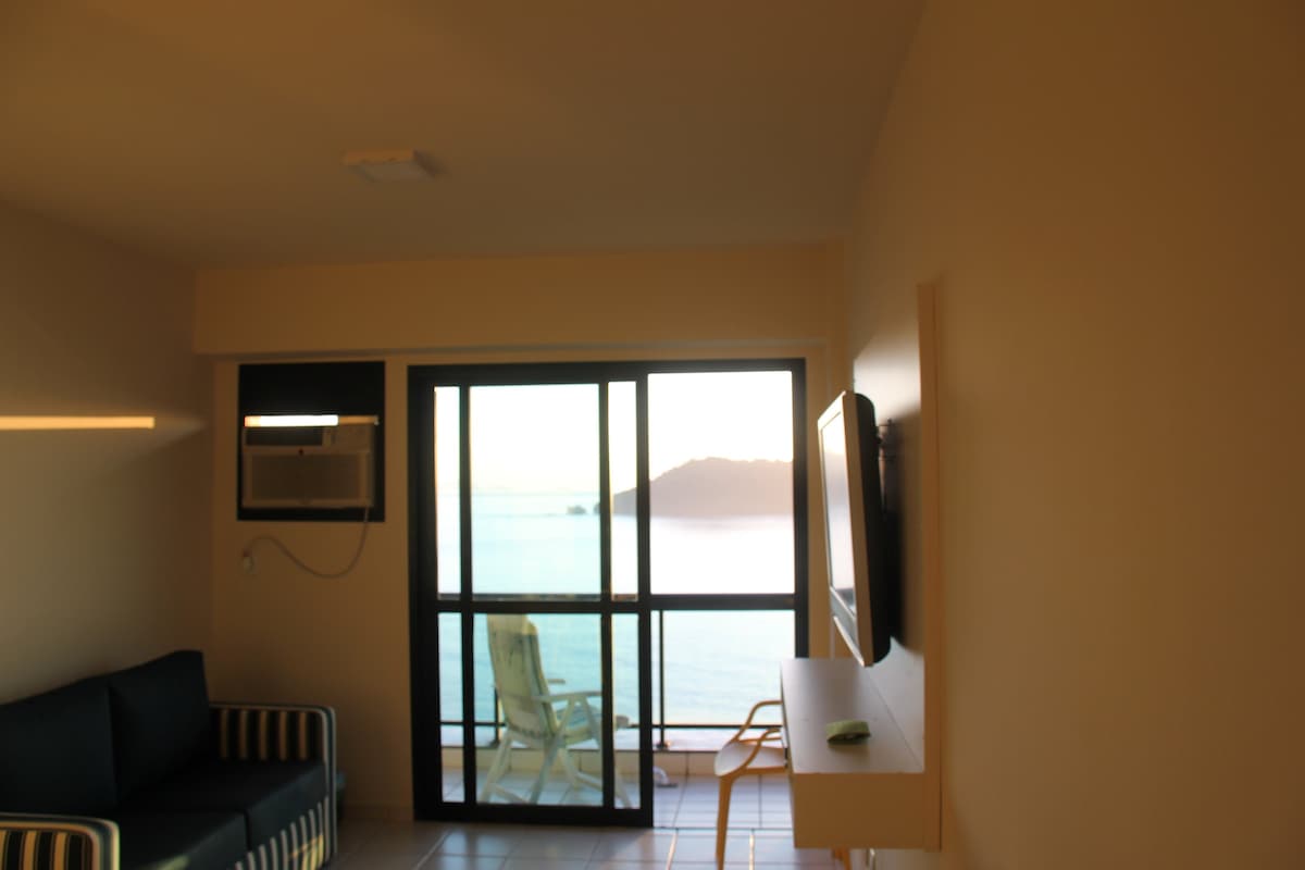 Porto Real Resort度假村,享有全面的使用權!這裡是一塊天堂,擁有私人海灘、俱樂部、天然海水泳池、碼頭,面朝大島...總之,是一個享受的特殊地方! 該公寓的所有房間均可俯瞰大海和俱樂部。房源內有帶陽臺的客廳、美式廚房、兩間臥室(其中一間為套房)和一個全功能衛浴。客廳和臥室均設有空調,並提供高速光纖網路。