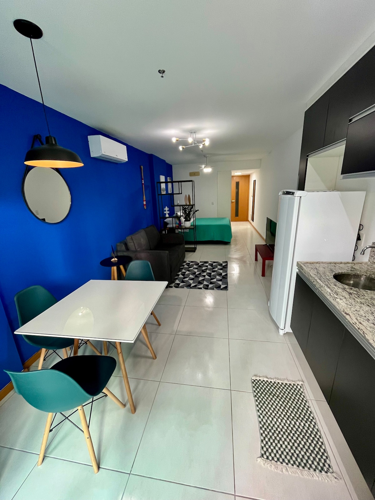 全新、全新裝潢、現代化和獨特的風格。 Studio Acqua位於Niterói最好的街區,位置優越,步行2分鐘即可抵達Icaraí木板路。 靠近超市、藥店、酒吧、餐廳和商場。 輕鬆前往海灘和市中心。 單間公寓有一張舒適的雙人床(01)和一張雙人沙發床(01)。 新建築,提供免費停車位代客泊車。 非常適合旅客、高管和情侶入住。