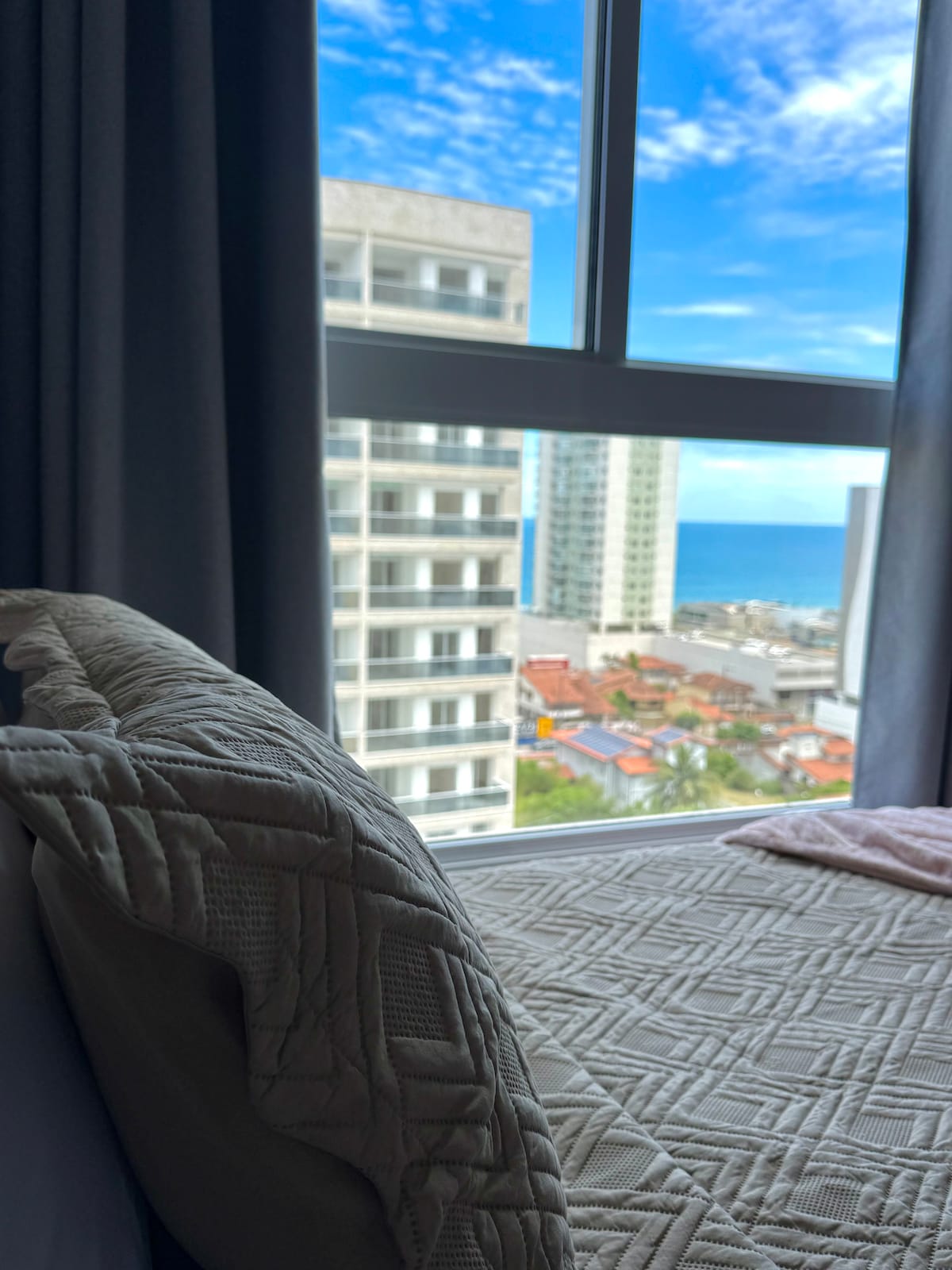 公寓位於Vila Velha的Itapuã社區的新公寓,臥室配有空調。 海景,距離海灘500米。 大廈設有24小時禮賓服務、電梯、泳池和健身房。 地理位置優越,位於充滿休閒選擇(酒吧、餐廳、商店、商店、超市)的街區 入住迷人的公寓,享受Vila Velha ,舒適,配備您所需的一切設施。