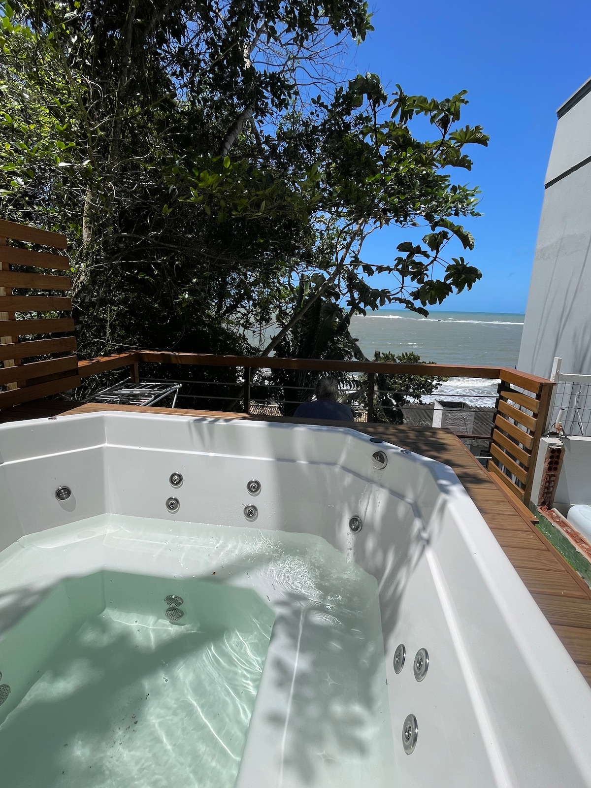 完整的海景家庭俱樂部。裝潢精美的公寓,海景,全新,套房加兩間臥室,大陽臺,配有木炭燒烤爐,家庭俱樂部提供無邊泳池、兒童泳池、溫水泳池、酒吧、按摩浴缸、健身房、桑拿房、電影院、遊戲室、玩具庫、寵物空間、兒童空間、遊樂場、吊床、沙灘網球場等。獨家通往海灘。距離 Beto Carreiro World 公園約 15 公里。