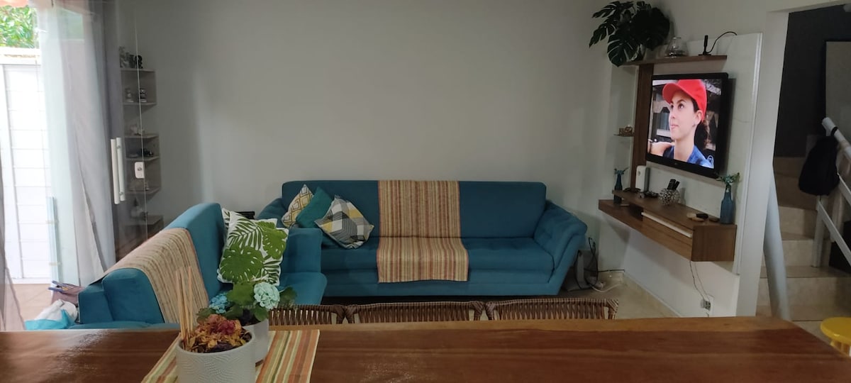 ideal para 🌙 de mel, ambiente familiar, tranquilo, estacionamento no portão, rua sem saída. Distância de +/- 4 min andando até o mar, vista para praia e montanhas, ideal para família e, temporada para serviços local de empresas . Não é compartilhado com outros hóspedes .